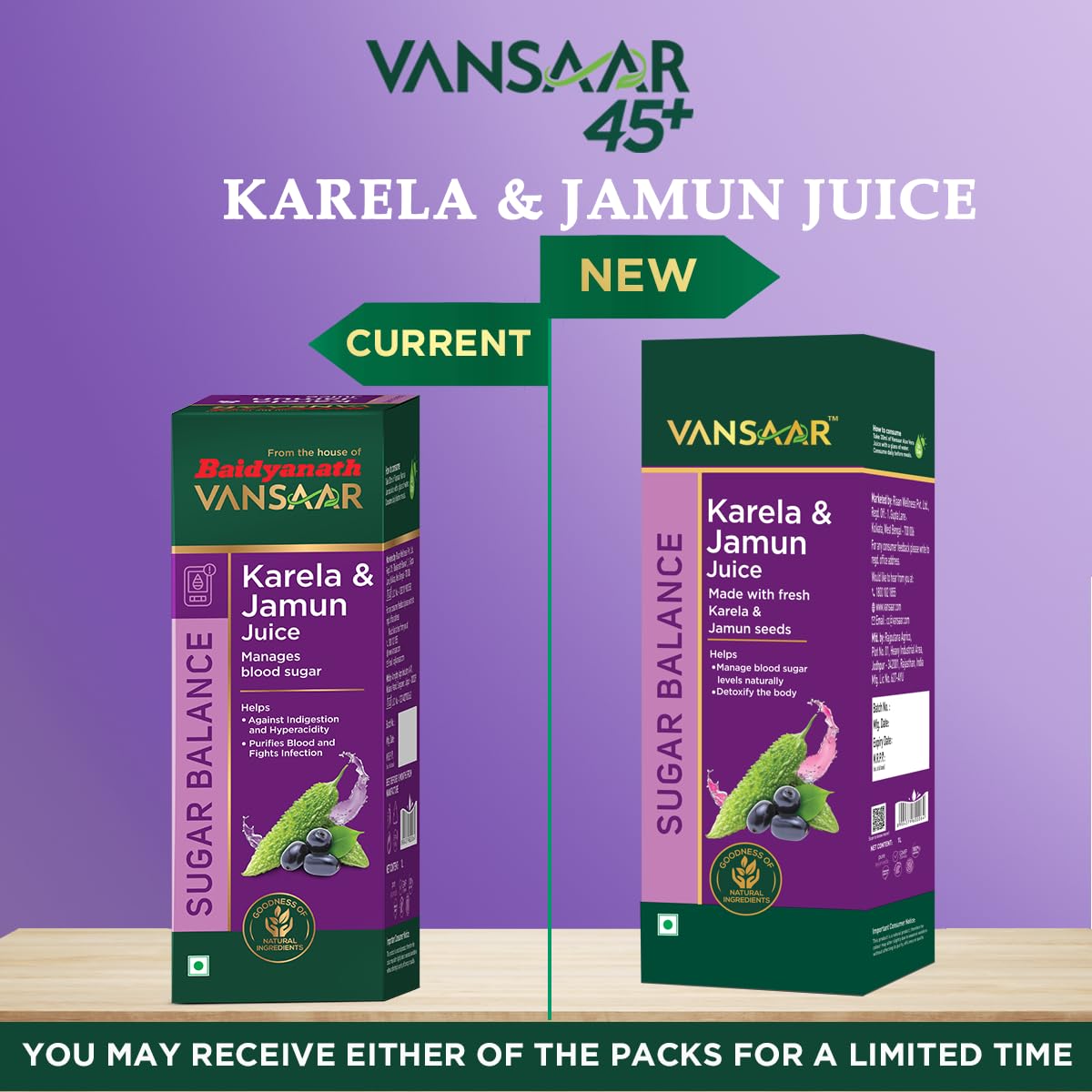 Vansaar 45+ Karela Jamun Juice 1 litre | Natural Sugar Control Juice for Diabetic Care | Manage Blood Sugar Levels with Fresh Karela & Kala Jamun| Sugar Free Juice for Diabetes & Pre – Diabetes care