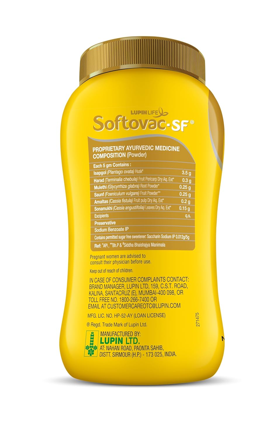 The Lupin Life Softovac Bowel Regulator is designed to provide gentle and effective relief from constipation. This formula supports optimal digestive health by addressing common gastrointestinal concerns such as indigestion, hard stools, and irregular bowel movements, all while ensuring a soothing, non-irritating experience. Harnessing the power of Ayurveda, Softovac isabgol powder features a potent blend of six powerful ingredients, including mulethi, saunf, isabgol, sonamukhi, harad, amaltas, and gulab dal, which work together to support intestinal health, boost appetite, and maintain balanced gut function, helping to restore digestive balance naturally. With its non-habit-forming properties, this gentle powder is safe for regular use, eliminating concerns about dependency or rebound constipation. This is also sugar-free, making it suitable for individuals who are worried about their sugar intake or managing conditions like diabetes. For optimal results, simply take 1 to 2 teaspoons at bedtime with a full glass of warm or lukewarm water, allowing the natural ingredients to activate and provide the relief you need. Embrace the power of Ayurveda with Softovac, a holistic approach to digestive health that combines tradition, safety, and efficacy to help you feel healthier and more balanced every day.