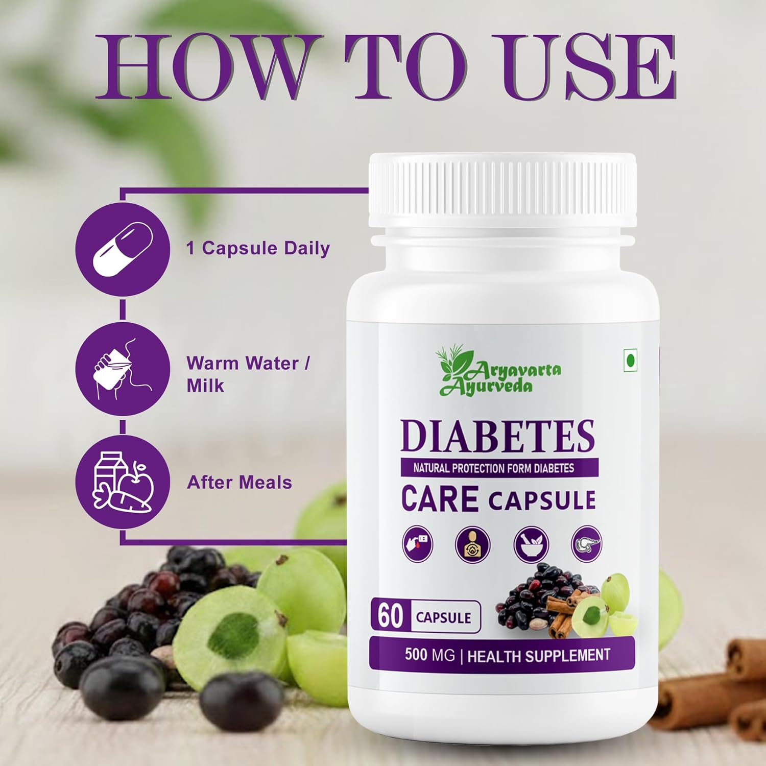 Diabetes Care 30 Capsule Pack of 1 | Blend With Jamun, Shilajit & Karela | Manage Diabetes & Blood Sugar Level | Dia & Sugar Free Ayurvedic Medicine For Men & Women | BPA & GMO Free