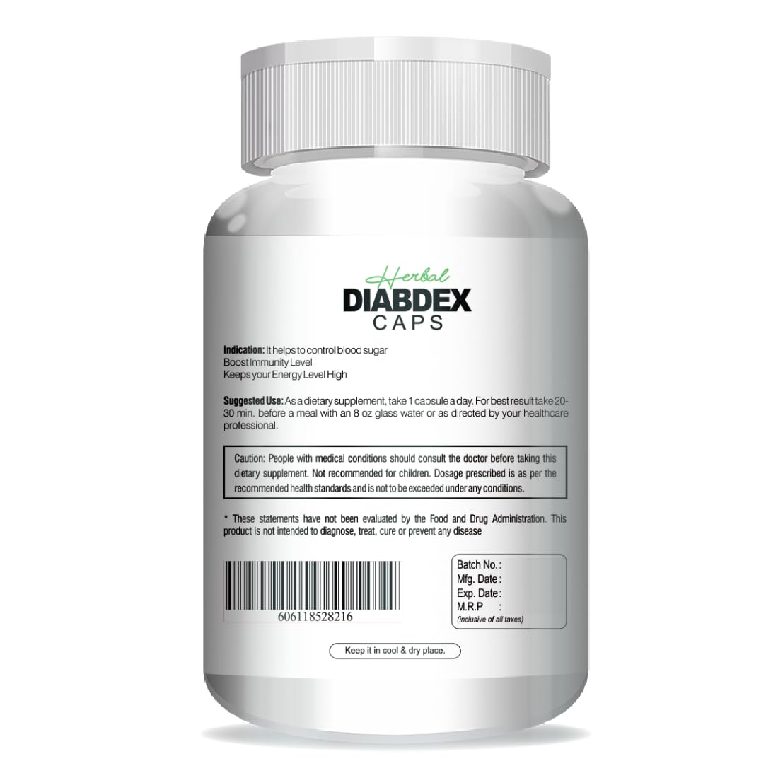 Healthy Nutrition Herbal Diabdex Diabetes 60 Veg Capsule Ayurvedic Blood Sugar Supplement Support Insulin production Pack of 1
