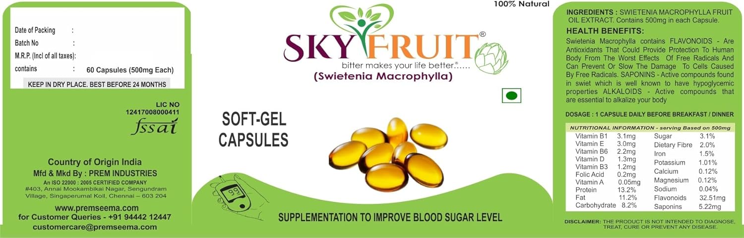 Natural Ingredients: Made from premium Sky Fruit extract, a trusted herbal remedy for diabetes management. Effective for Long-Term Use: With regular use, the Skyfruit Softgel supports sustained health benefits for individuals with diabetes, improving overall well-being.