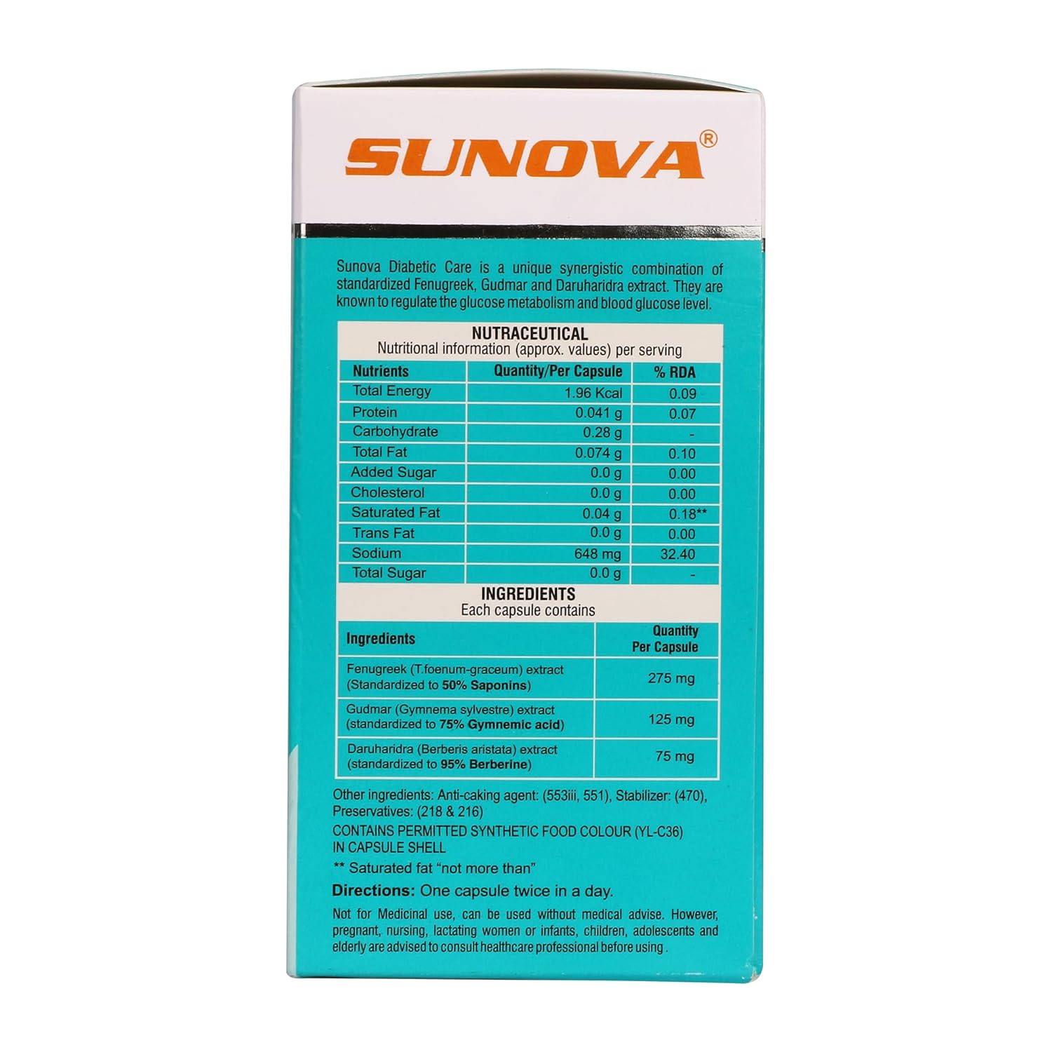SUNOVA DIABETIC Care Capsules – An Effective Vegan Supplement, Fenugreek, Gudmar, and Daruharidra extract – 60 Veg Capsules x Pack of 2