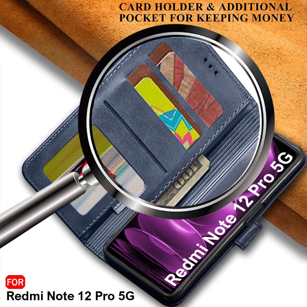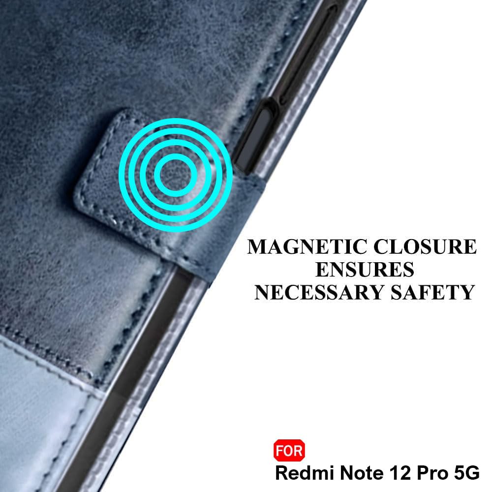 TheGiftKart Flip Back Cover Case for Mi Redmi Note 12 Pro 5G | Dual-Color Leather Finish | Inbuilt Stand & Pockets | Wallet Style Flip Back Cover Case for Redmi Note 12 Pro (Faux Leather, Blue & Sky)