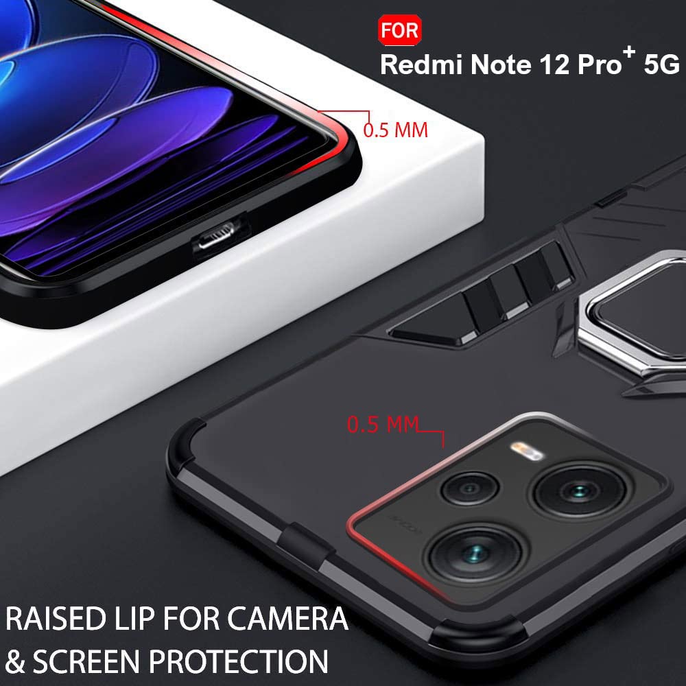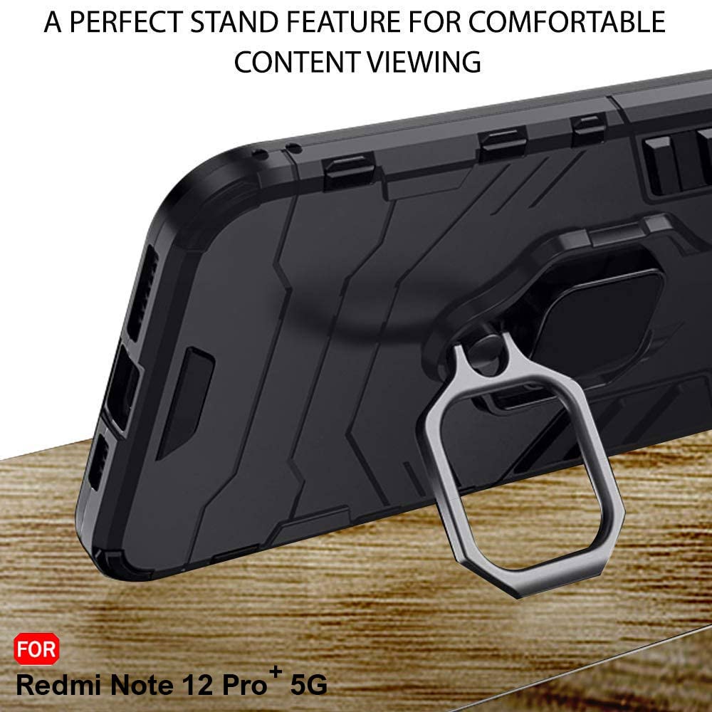 TheGiftKart Tough Armor Bumper Back Case Cover for Mi Redmi Note 12 Pro Plus 5G | Ring Holder & Kickstand in-Built | 360 Degree Protection Back Case Cover for Mi Redmi Note 12 Pro Plus 5G (TPU, Black)