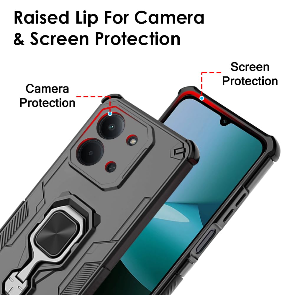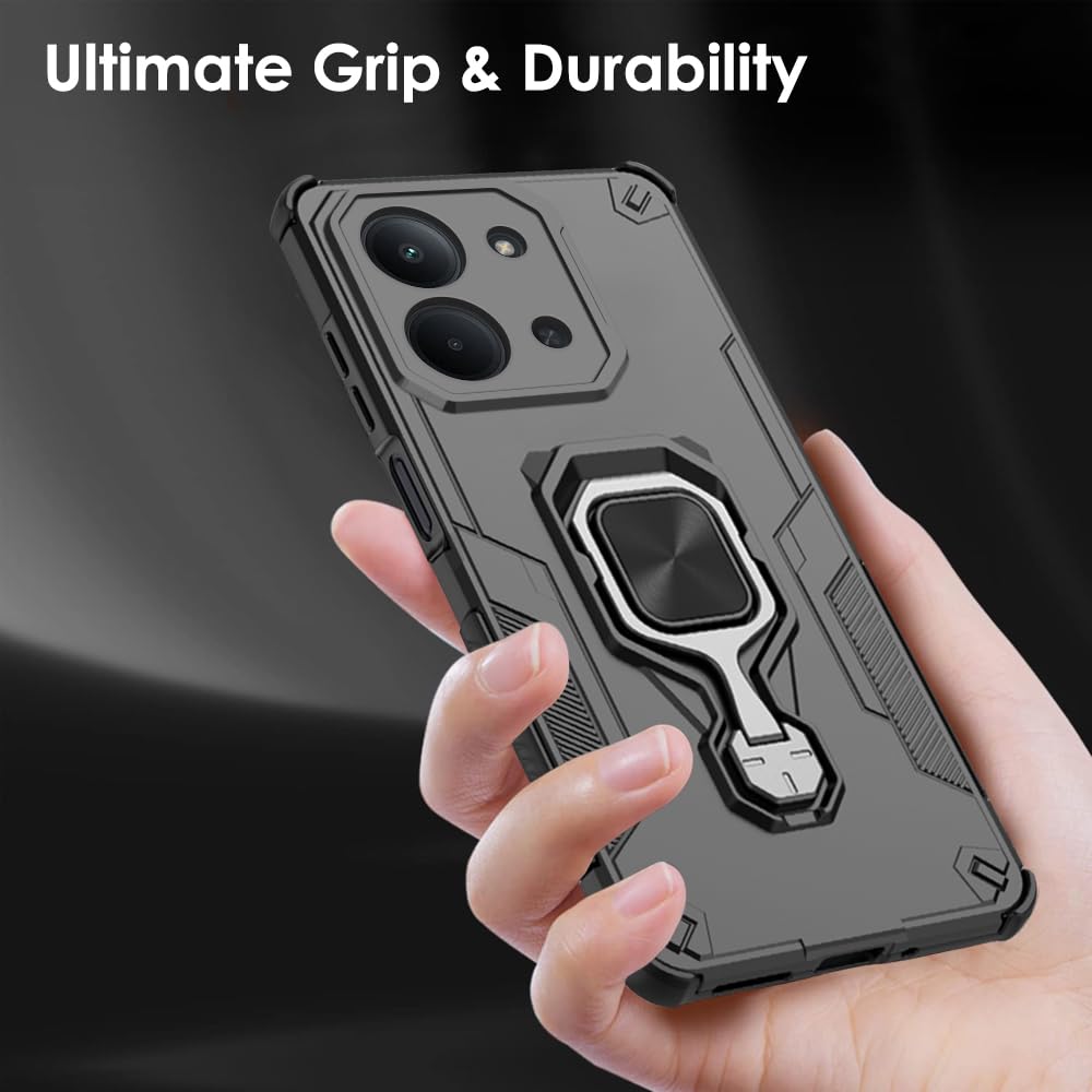 TheGiftKart Tough Armor Bumper Back Case Cover for Redmi 15C 5G | Ring Holder & Kickstand in-Built | 360 Degree Protection Back Case Cover for Redmi 15C 5G (PC & TPU, Black)