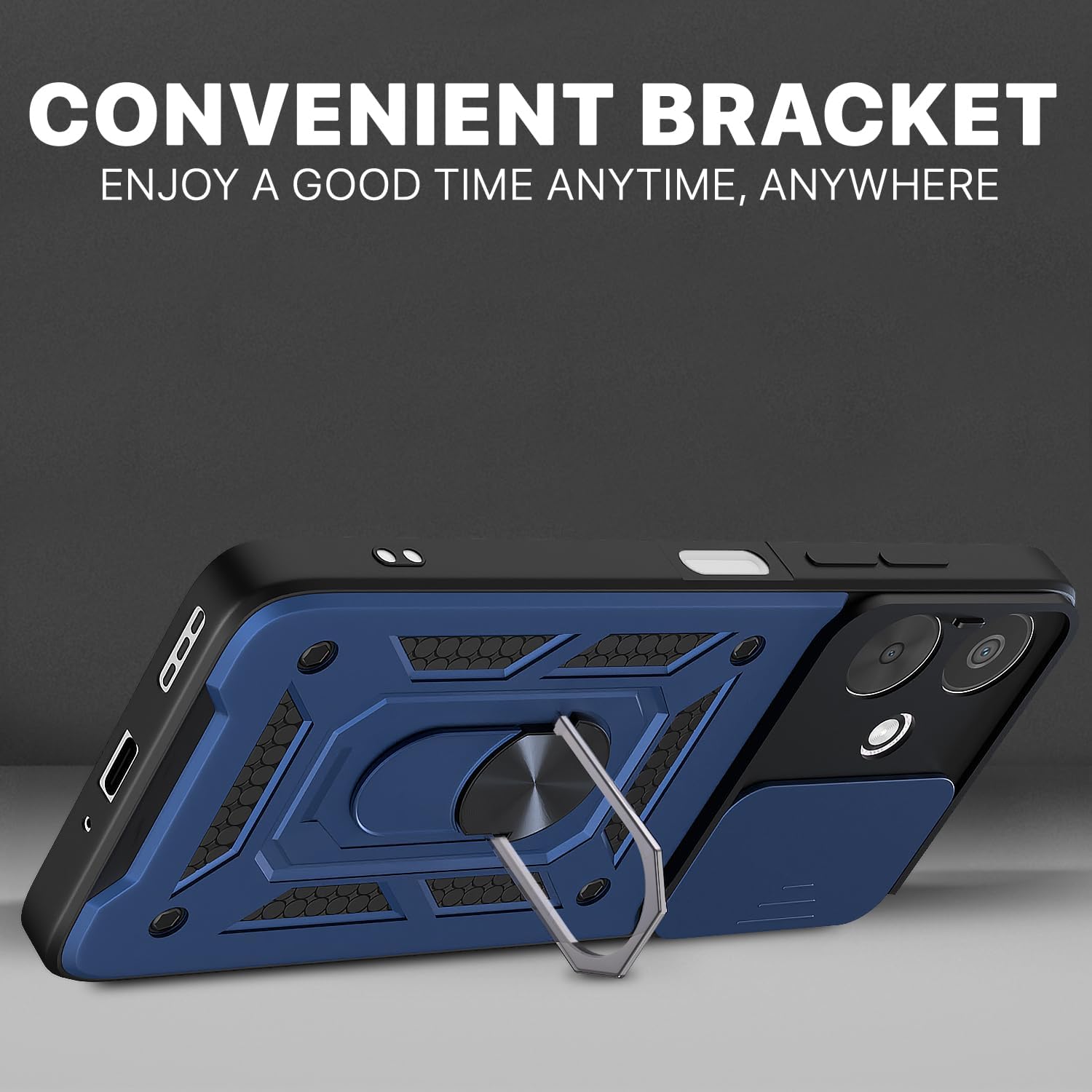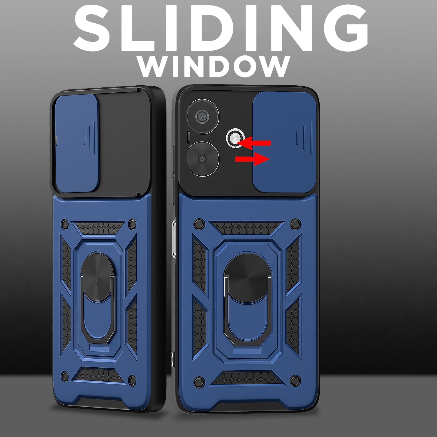 AIBEX® Back Cover for Redmi 13C 5G | D10 Tough Armor Case | Sliding Camera Shield | 360° Protection | Kickstand Ring Holder | Military-Grade Shockproof Bumper Case