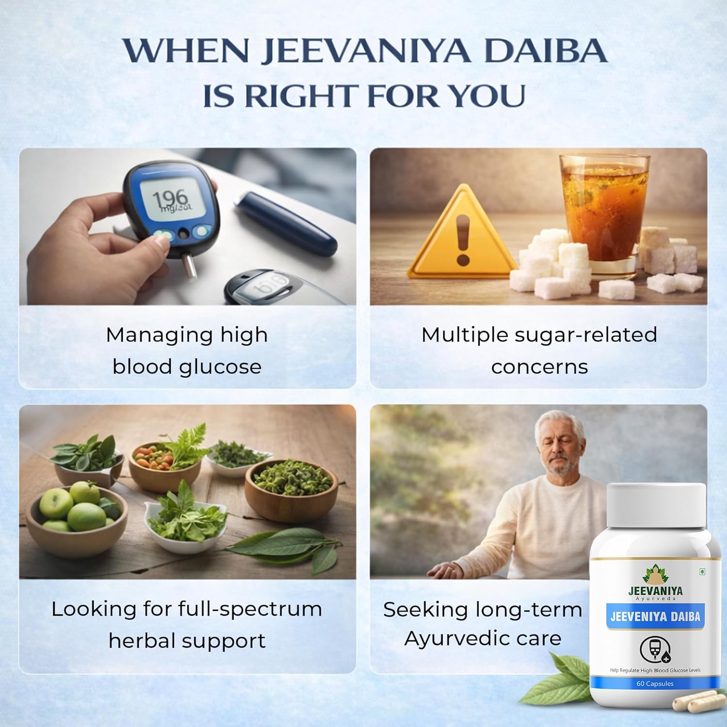 Maintaining balanced blood glucose levels is an important part of overall wellness and a healthy lifestyle. Jeevaniya Ayurveda Blood Glucose Support Capsules are thoughtfully formulated using Ayurvedic principles to support healthy sugar balance and metabolic wellness. This herbal wellness formula is designed to complement daily routines by supporting the body’s natural glucose management process. Regular use, along with a balanced diet and active lifestyle, may help promote metabolic balance, energy stability, and overall well-being. Ideal for adults seeking a natural, Ayurvedic approach to daily sugar balance support, these capsules are suitable for long-term wellness routines and everyday use.
