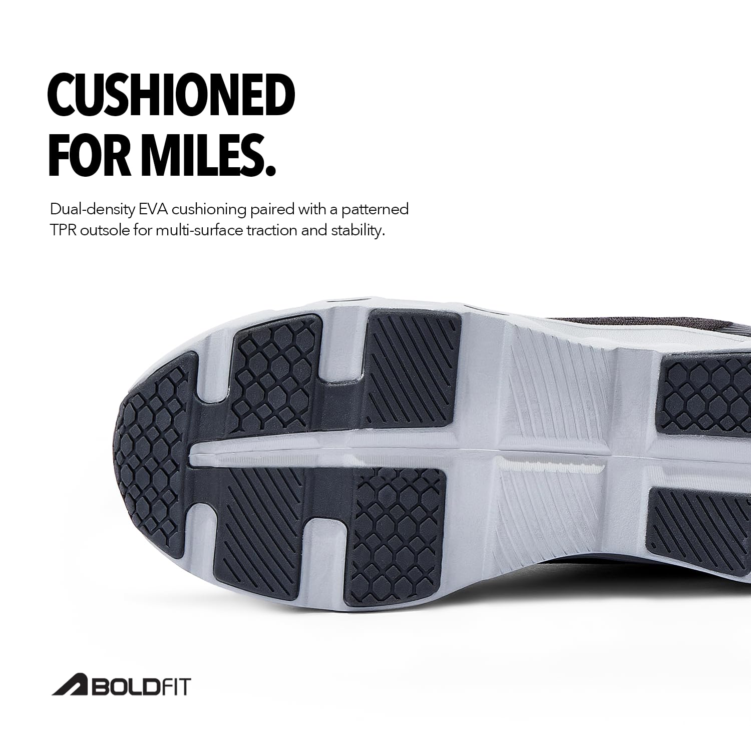 Ready to take your running to the next level? The Boldfit Airframe running & training shoes are crafted for those who demand peak performance. Featuring a breathable mesh upper, these shoes keep your feet cool and dry, even during intense workouts or long-distance runs. The unique design provides cushioned comfort, reducing friction and preventing blisters. The standout feature is the Geometric Hollow-Cushion Outsole, a unique design that works like a built-in spring to provide superior shock absorption. Powered by an advanced EVA midsole, these running shoes deliver a bouncy feel that protects your joints and lets you push your limits. Whether you’re pounding the pavement, hitting the treadmill, or lifting weights in the gym, the durable, hollow-structured sole provides enhanced grip and “cloud-like” stability on any surface. Lightweight yet sturdy, these shoes offer unmatched versatility for running, training, or casual wear. Step up your fitness game with Boldfit- never miss a beat with every step you take!
