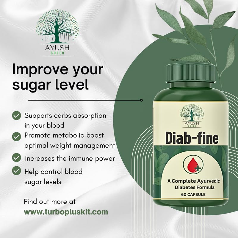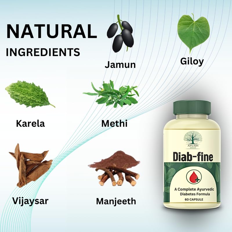 Diab-Fine Diabetes Care Tablets | Ayurvedic product | Clinically backed | helps maintain healthy blood sugar level (60 Capsules, Pack of 1)