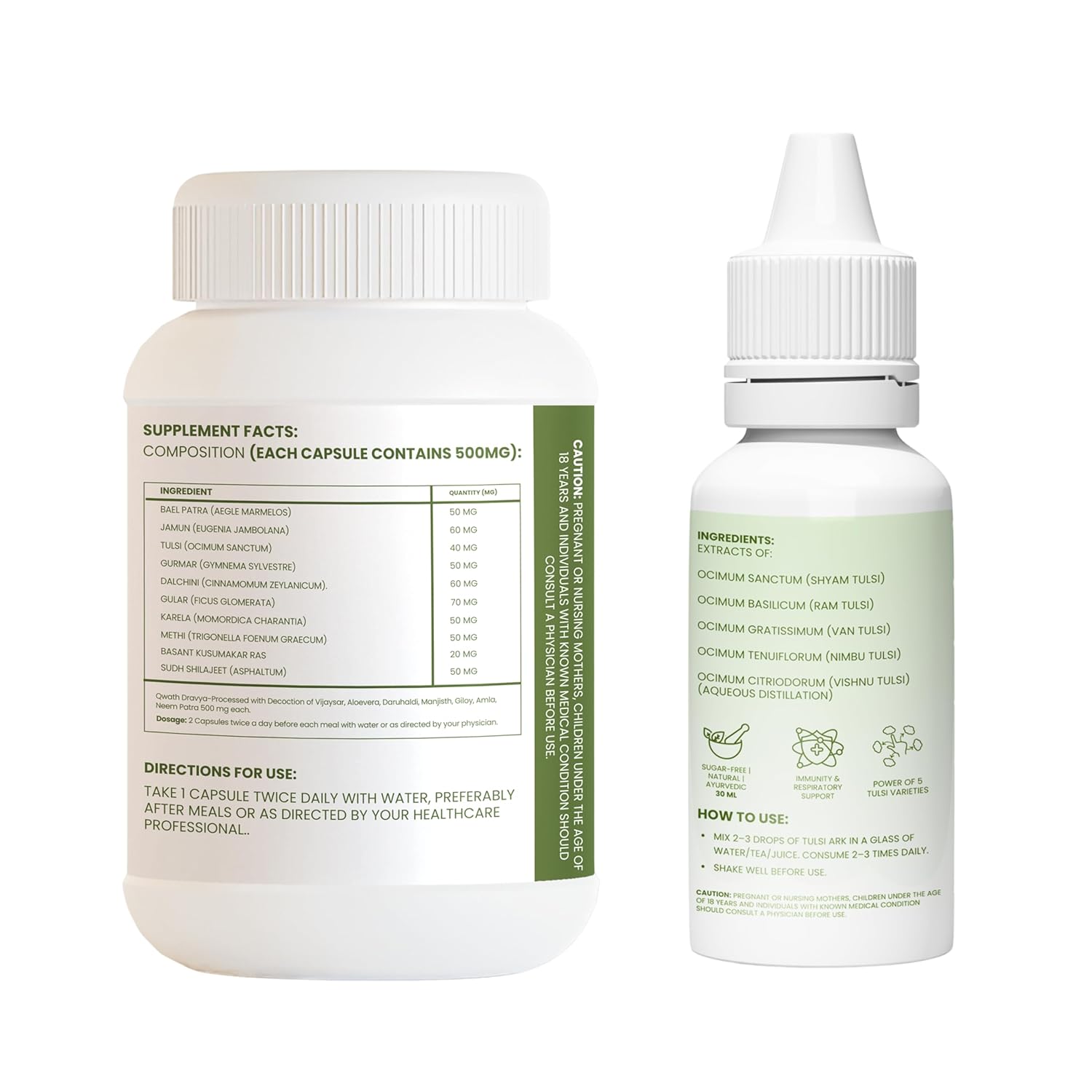 Diabetic Care Capsules + Tulsi Ark Drops Combo | Ayurvedic Blood Sugar Balance, Sugar Control & Immunity Support | 30 Capsules + 30ml | Natural Herbal Supplement for Diabetes & Respiratory Health