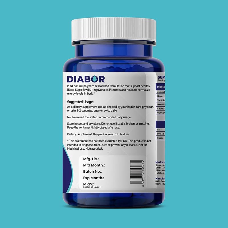Diabor For Diabetic Care Supplements with Karela, Gudmar, Jamun | Help Control Blood Sugar Levels | Natural Glucose Regulator 120 Diabetes Capsule