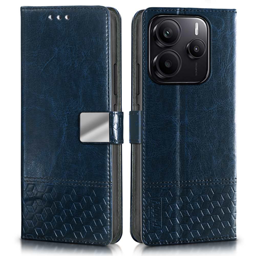 Pikkme Flip Cover Leather Finish | Inside TPU with Card Pockets | Wallet Stand and Shock Proof | Complete Protection Flip Case for Redmi Note 14 5G (Blue)
