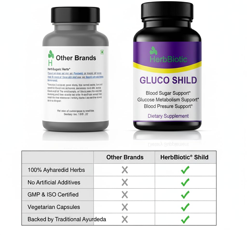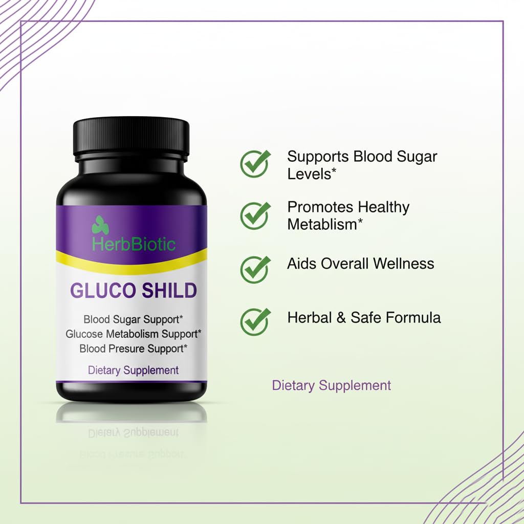 Gluco Shild Blood Sugar Control Capsules | Herbal Formula for Diabetes Care, Insulin Support & Glucose Balance | Enriched with Gudmar, Haridra, Karela & Neem – 60 Caps | gluco shield herb biotic