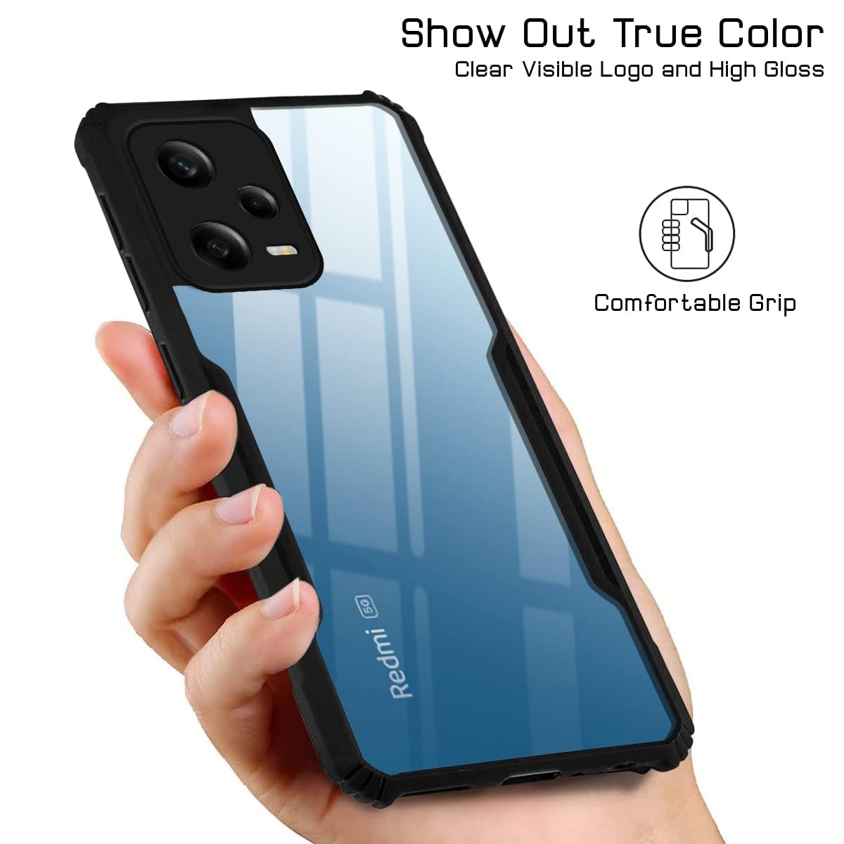 Jkobi Back Cover Case for Redmi Note 12 5G (Shockproof with Clear Panel | Professional Black)