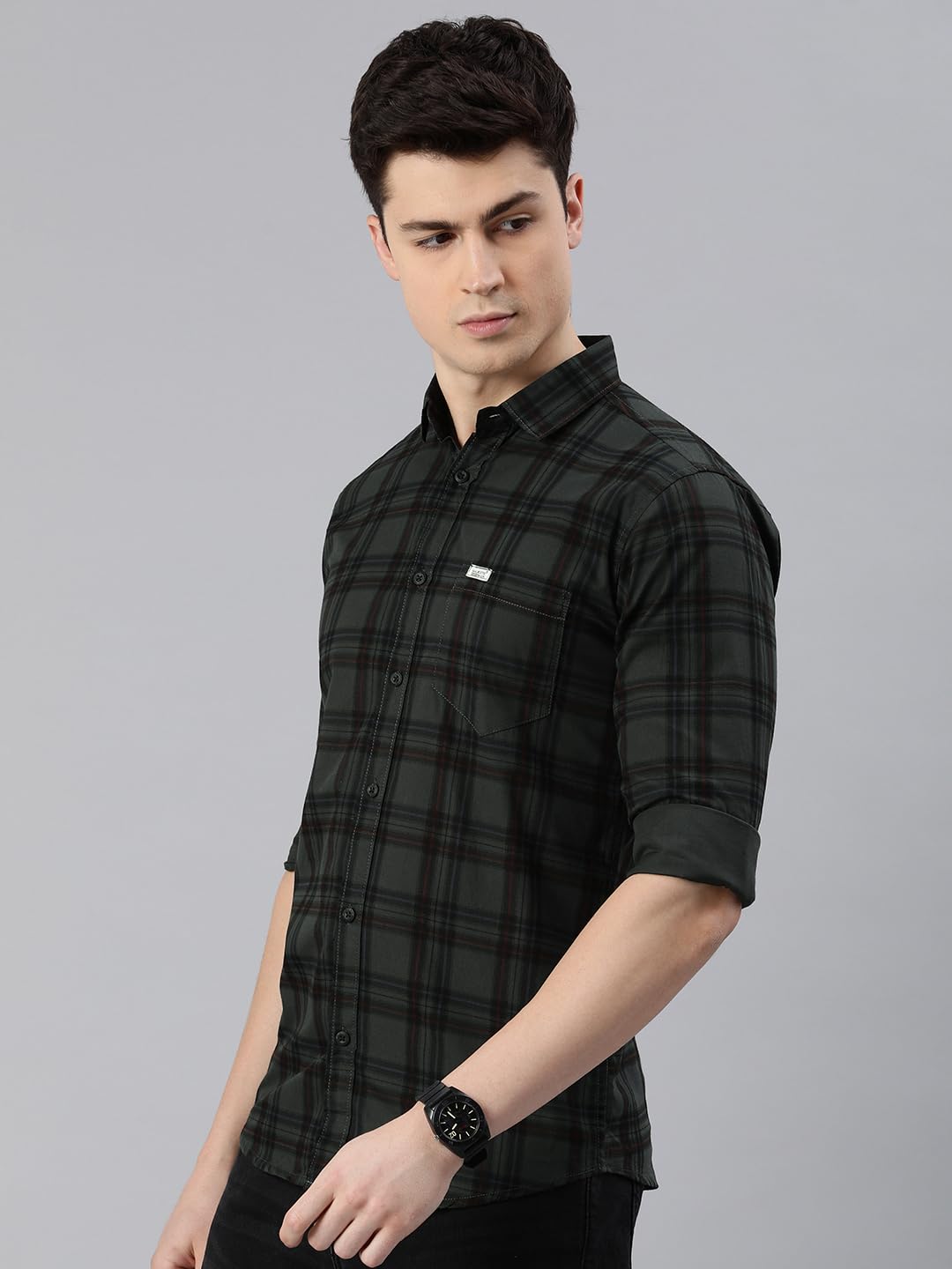Majestic Man Men Small Checkered Slim Fit Cotton Casual Shirt