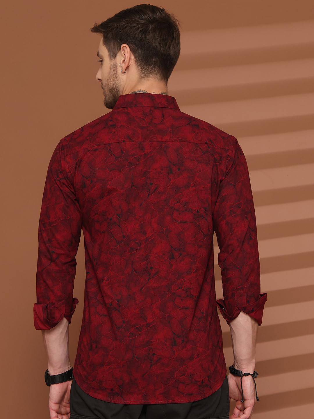 The Indian Garage Co Men’s Cotton Slim Fit Placement Print Full Sleeves Cutaway Collar Double Flap Pocket Casual Over Shirt
