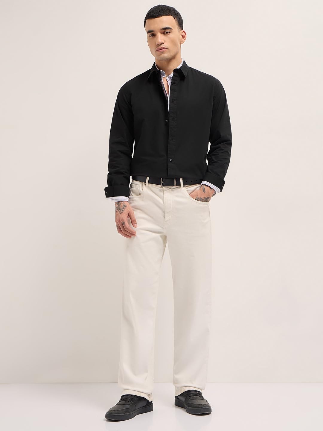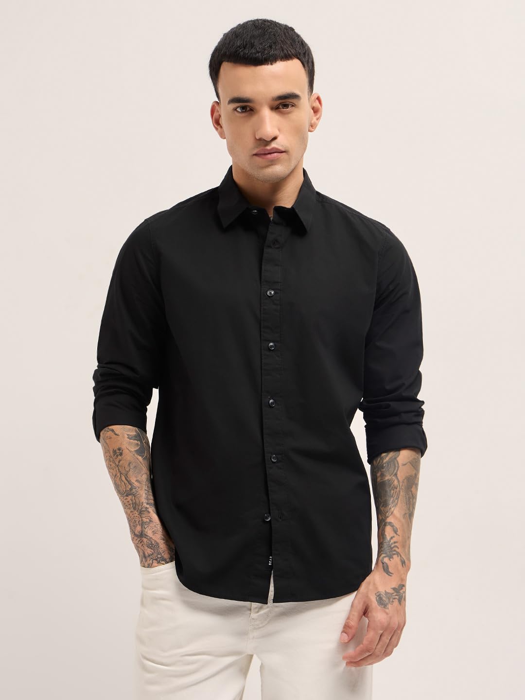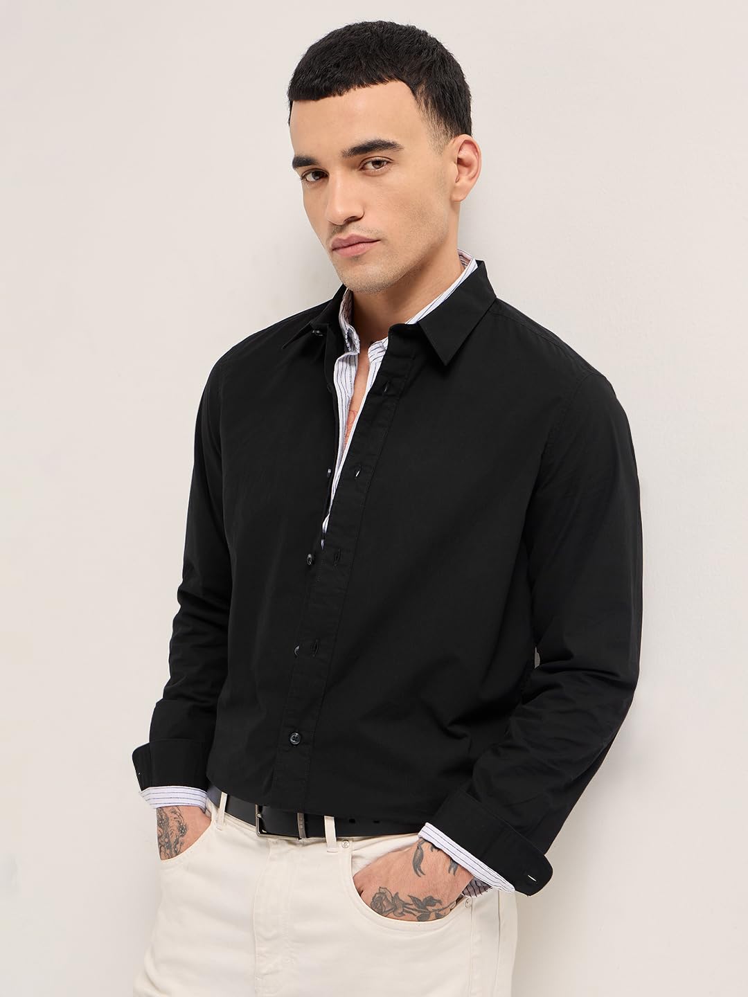 Men’s Black Regular Fit Solid Cotton Woven Casual Shirt