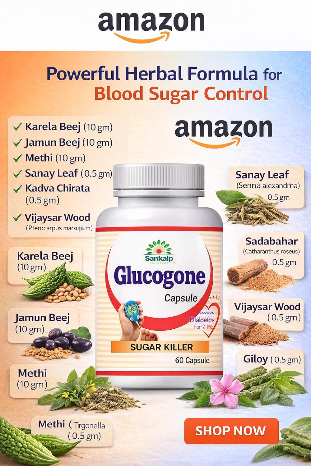Sankalp Therapeutics | Glucogone 60 Capsules | Sugar Killer | Karela beej | Jamunbeej | Methi
