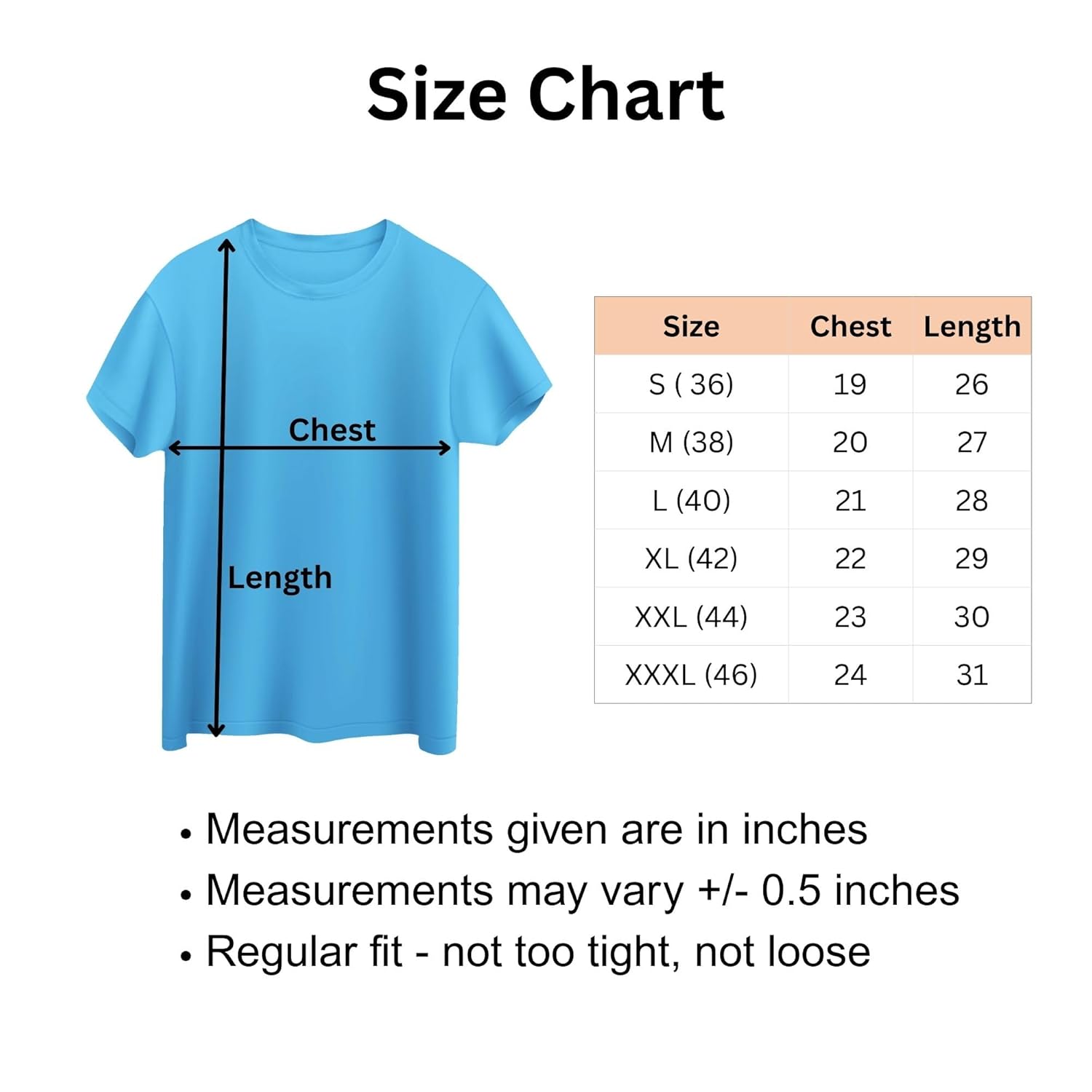 Made with soft and rich 100% cotton blend fabric, this printed T-Shirt for all-day comfort. Regular fit for a comfortable and relaxed feel. Classic round neck design for versatility, Short sleeves for a casual and relaxed look. Stay Stylish and versatile with this classic and timeless design t-shirts suitable for any occasion. Care instructions – Machine washable for easy care and maintenance, avoid using brushes. To prevent shrinking, always wash your t-shirt in cold water and avoid using bleach. Size – To ensure it fits properly please refer to our size chart provided in the image gallery.