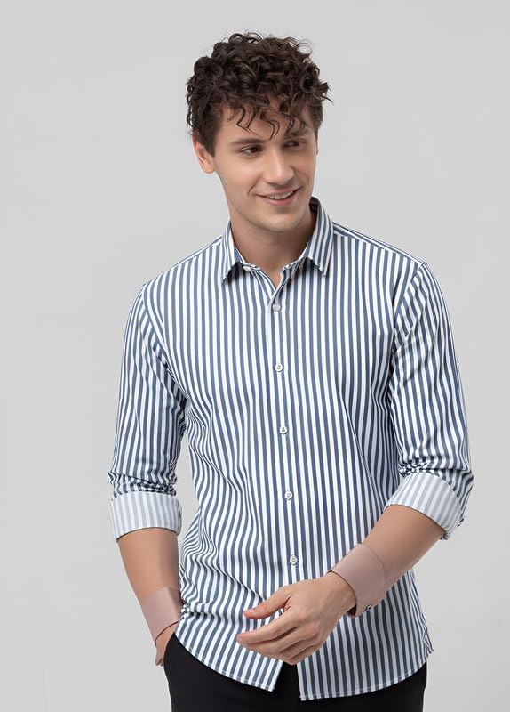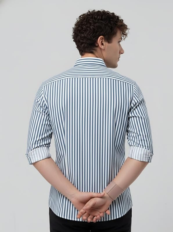 U TURN Men’s Casual Solid Stylish Latest Formal Striped Shirt for Men