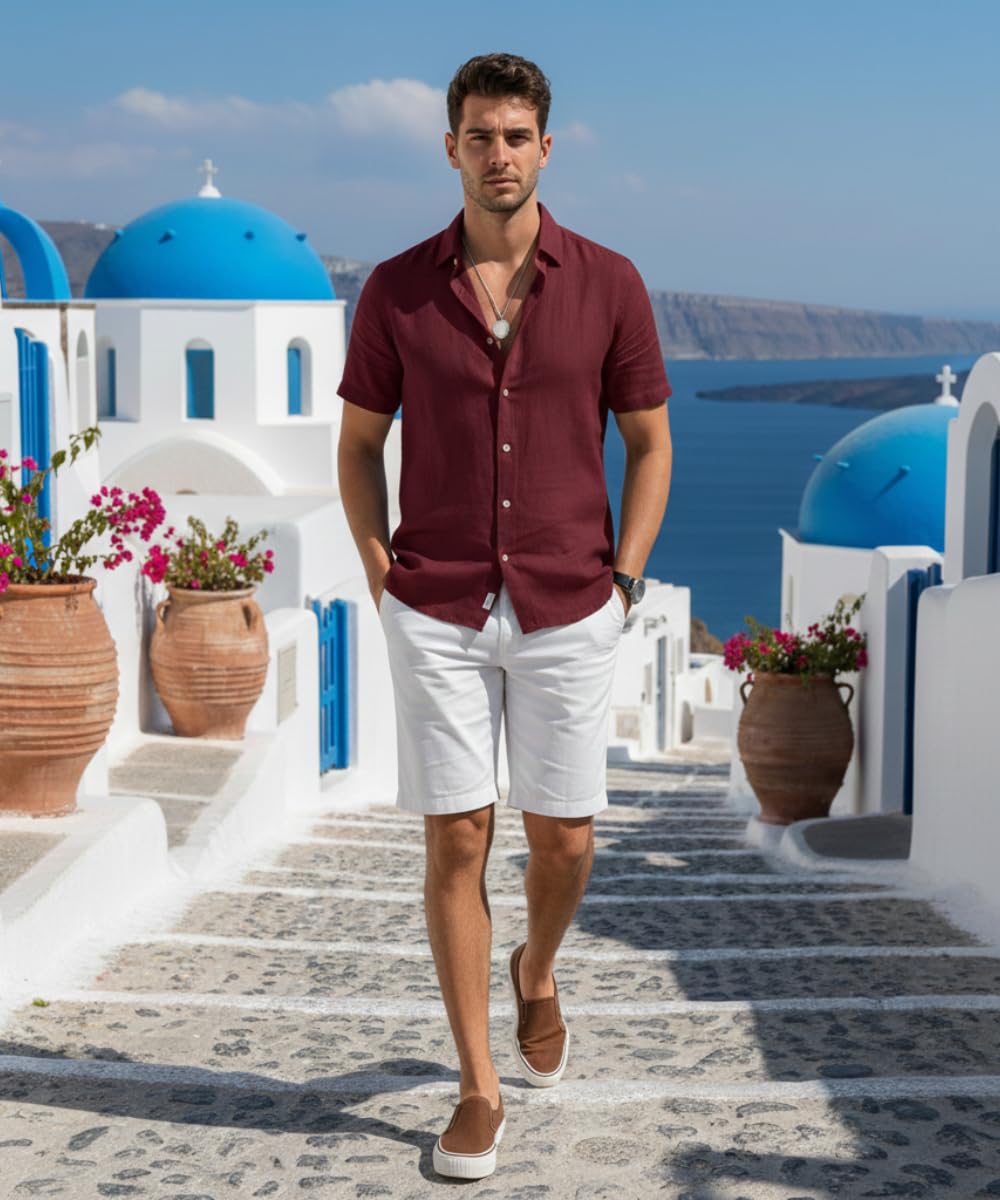 VastraVibes Premium Cotton Linen Shirt for Men | Half Sleeve Slim Fit Casual Shirts | Lightweight Beach Wear & Festive Outfits | Trending Pastel Colors
