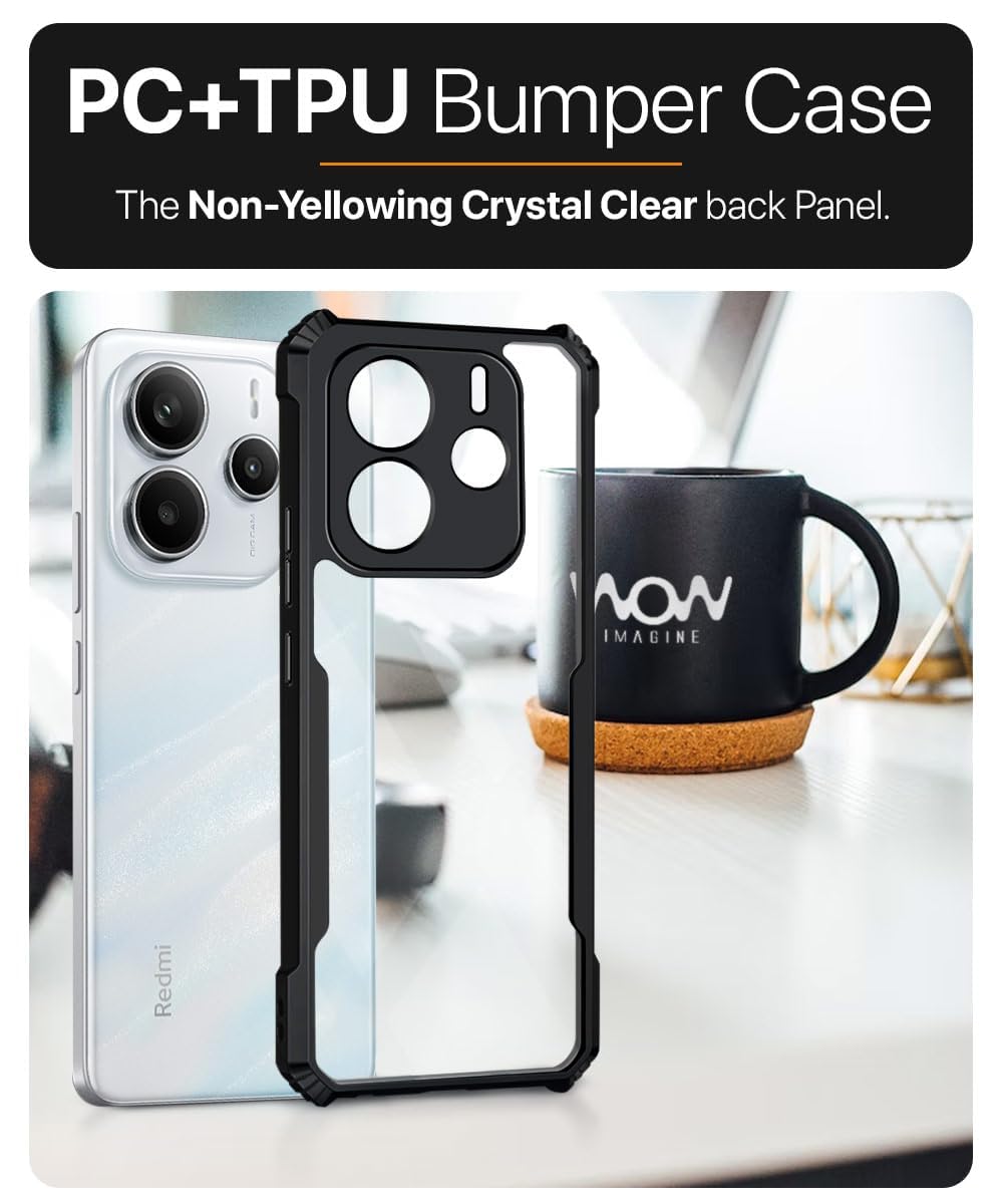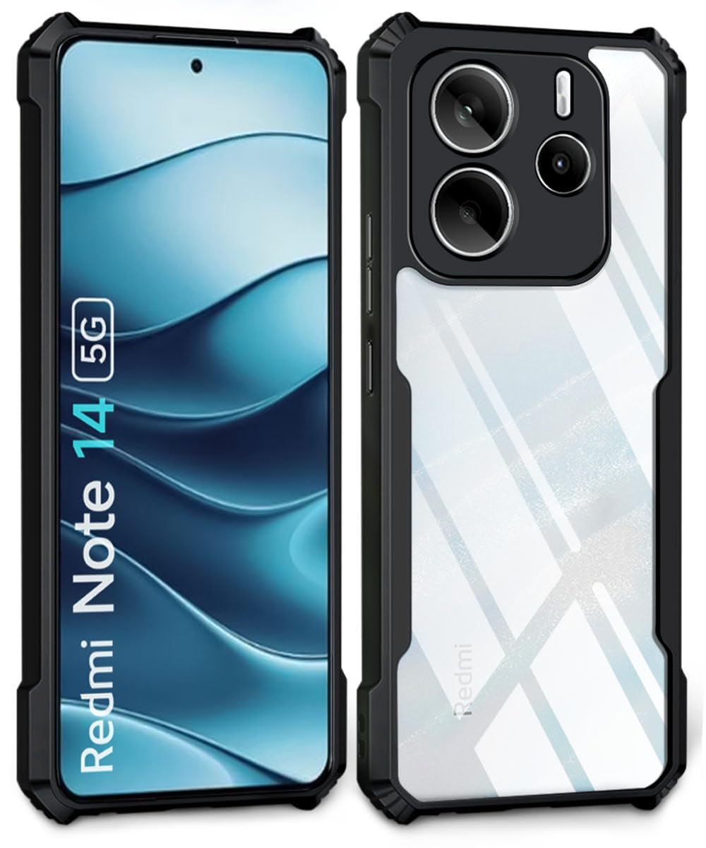 WOW IMAGINE Shock Proof Clear Protective Back Case for Redmi Note 14 SE 5G | Redmi Note 14 5G- AirEDGE Technology | 360 Degree Camera Protection | Transparent Hybrid Mobile Cover – Black