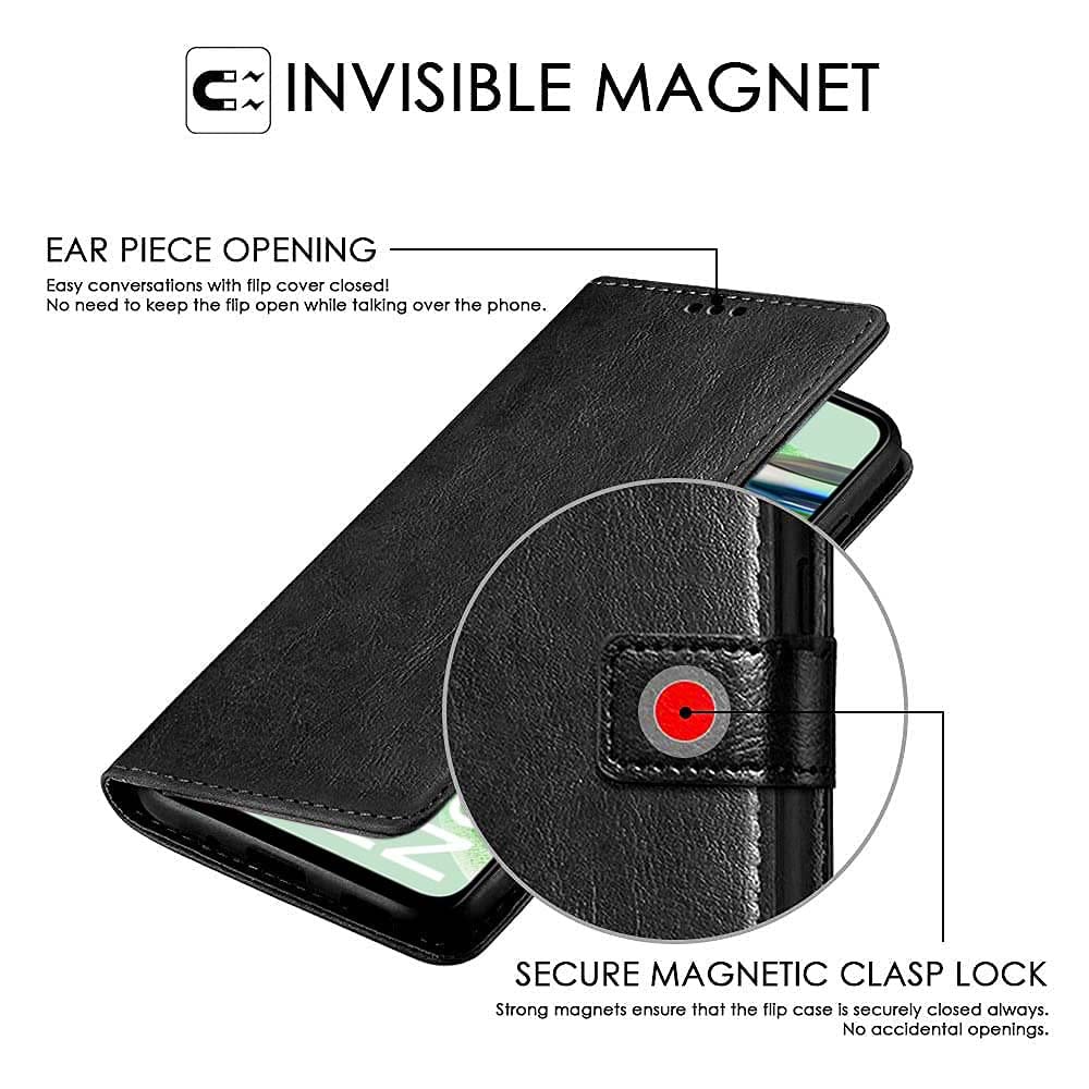WOW IMAGINE Shock Proof Flip Cover Back Case Cover for Redmi Note 12 5G | Poco X5 5G (Flexible | Leather Finish | Card Pockets Wallet & Stand | Black)