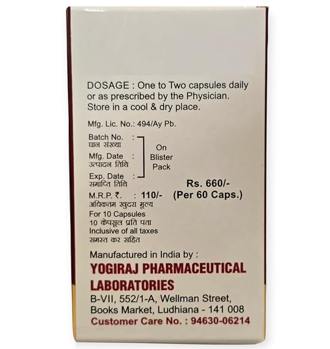 Trusted Indian Brand: Produced by Yogiraj Pharmaceutical Lab, known for its commitment to authentic Ayurvedic formulations.