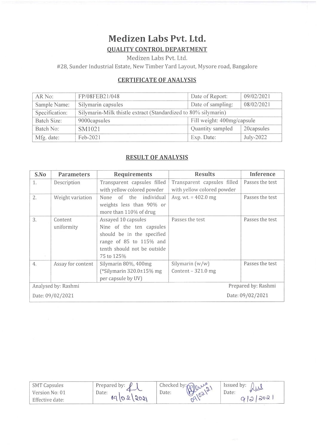 PURE ACTIVE INGREDIENT: Silymarin is considered one of the healthiest and most beneficial supplement and is renowned for its numerous health and wellness benefits. The vegetarian supplement provides 400mg of Silymarin Milk Thistle extract standardized to 80% Silymarin without any additives.