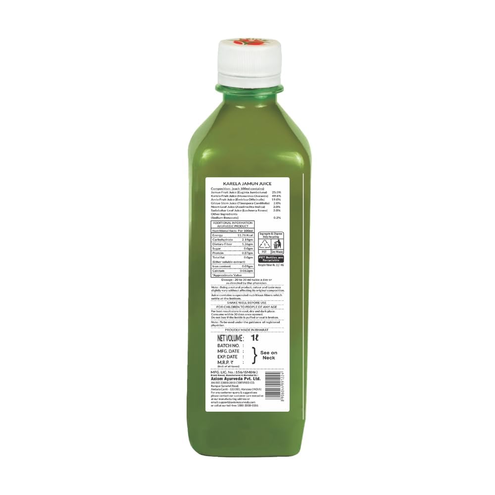 NO ADDED SUGAR: Axiom Karela Jamun Juice juice contains no added sugar or artificial taste enhancers. It is 100% Ayurvedic and safe to be consumed along with your regular allopathic medications.