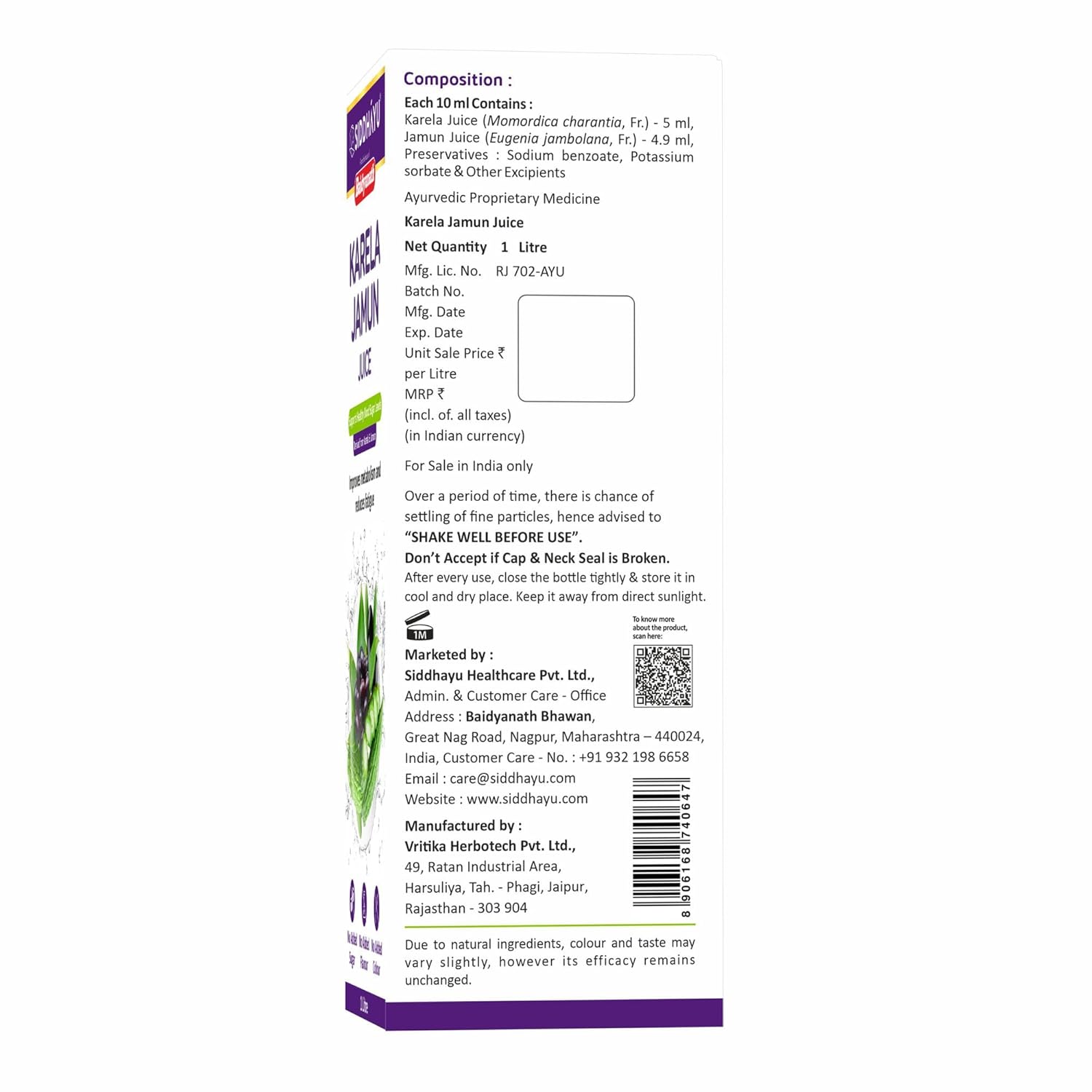 Baidyanath Asli Ayurved Asli Ayurved Karela Jamun Juice Paraben Free With No Added Sugar – 1litre, Pack of 1