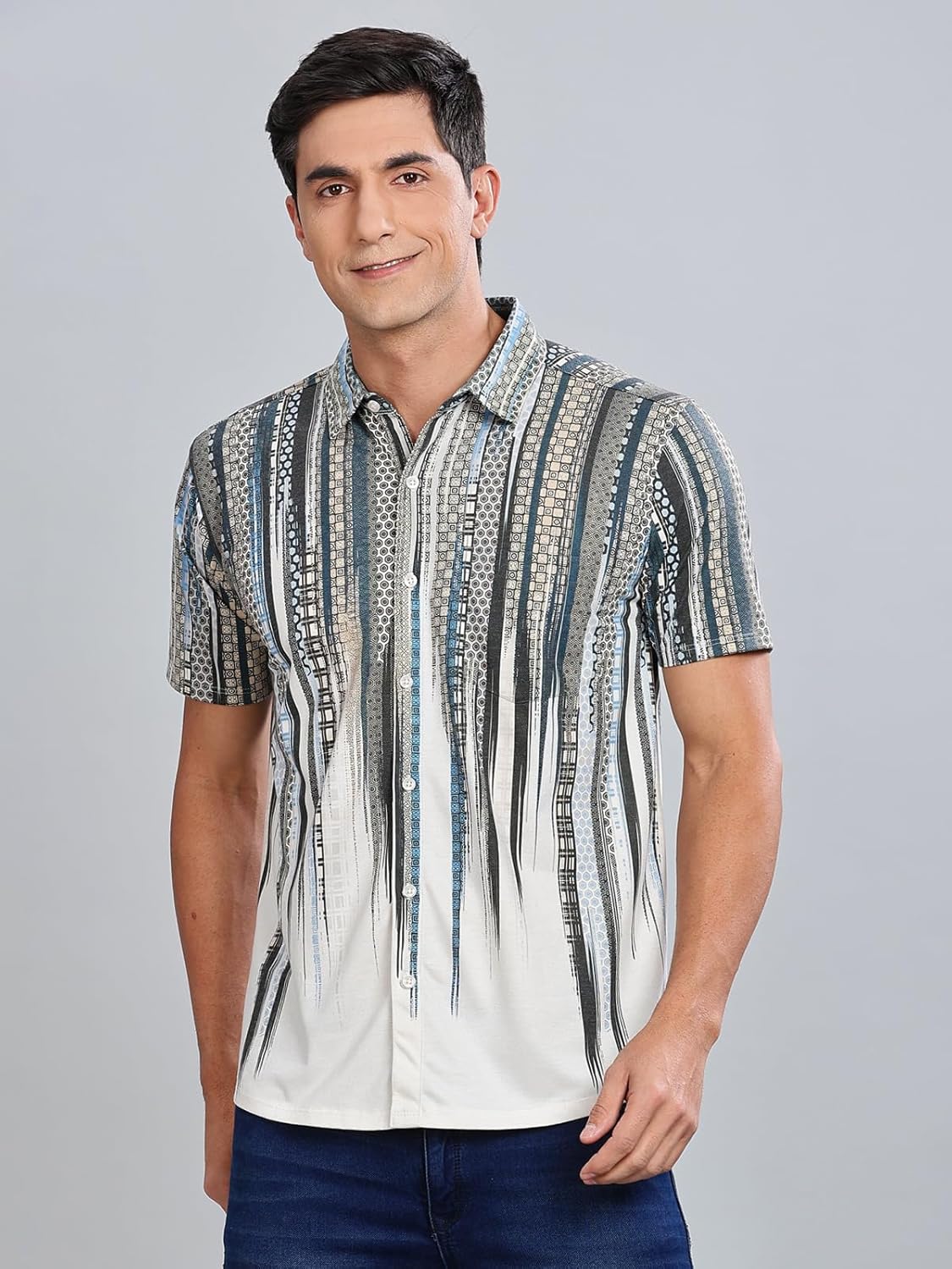 BULLMER Trendy Regular Fit Cotton Blend Printed Casual Half Sleeve Shirt for Men | Stylish Mens Casual Shirts | Shirts for Men