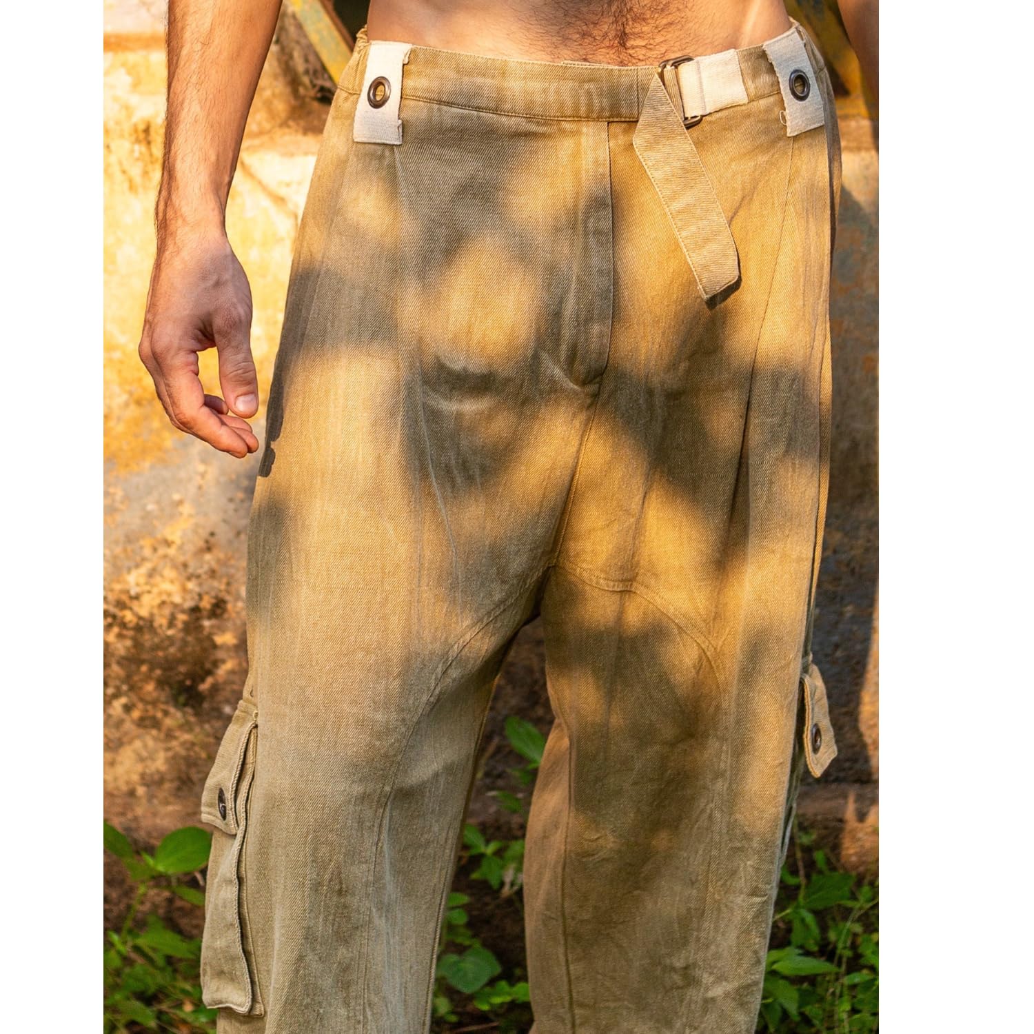 CRYSTALHEAL Magnetto Men’s Baggy Fit Cotton Twill Trousers – Faded Color Casual Pants with Metal Eyelets & Belt Hook – Stylish & Comfortable Denim-Look Bottoms