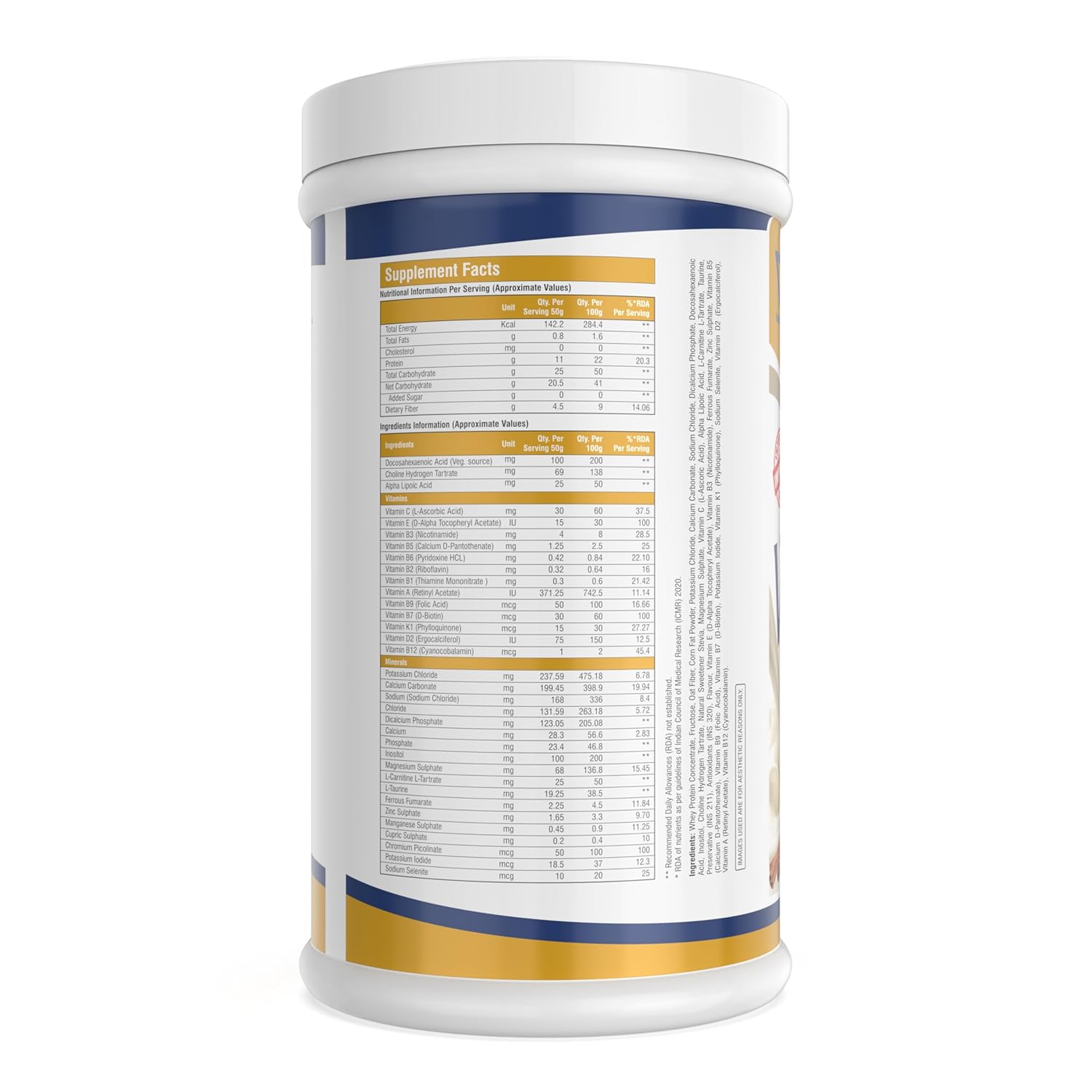 Short and long term of diabetic specific formula as oral and tube feeding are associated with improved glycemic control. Whey protein having all essential 9 amino acids have insulinotropic and glucose lowering properties, also containing fiber improves insulin sensitivity, L – Carnitine improves glucose disposable and reduces fatty acid level, L – Taurine resistance insulin power, Inositol prevents diabetic neuropathy, ALA-DHA improves insulin sensitivity and lower triglyceride and cholesterol level. Enriched with 28 kinds of essential vitamins and minerals helps in building stronger immunity.