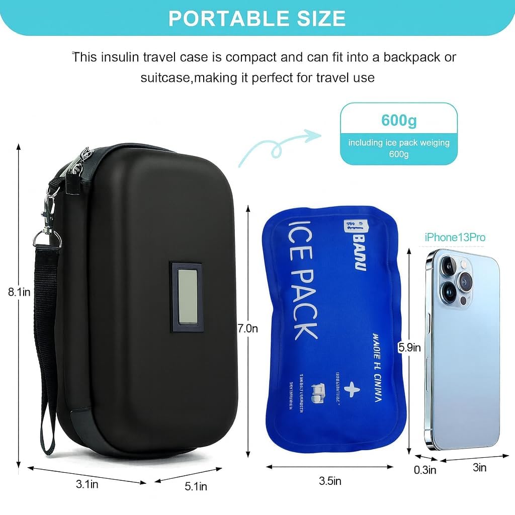 [Real-Time Temperature Monitoring] Stay confident on every trip with the built-in digital temperature display, allowing you to monitor internal temperature at a glance and ensure your insulin stays within a safe range.