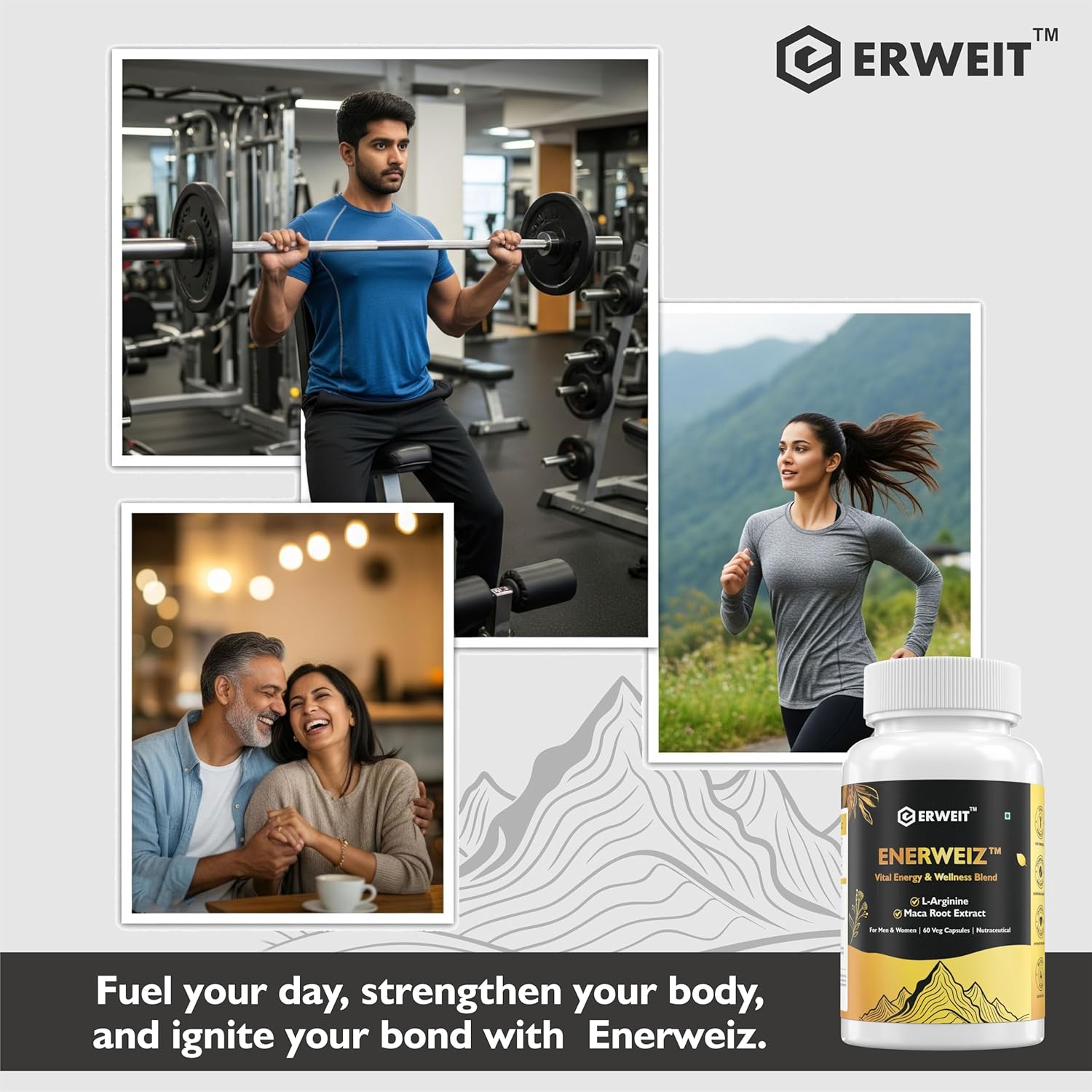 Enerweiz Daily Energy & Stamina Capsules for Men & Women | With L-Arginine & Maca Root | Supports Blood Flow, Performance & Vitality | 60 Capsules