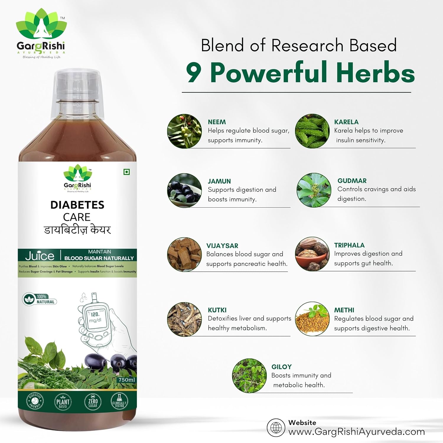 GargRishi Ayurveda Diabetes Care Juice 750ml | Ayurvedic Herbal Juice with Karela, Jamun, Neem & Gudmar | Supports Healthy Blood Sugar & Metabolism | Zero Sugar (Pack of 1)