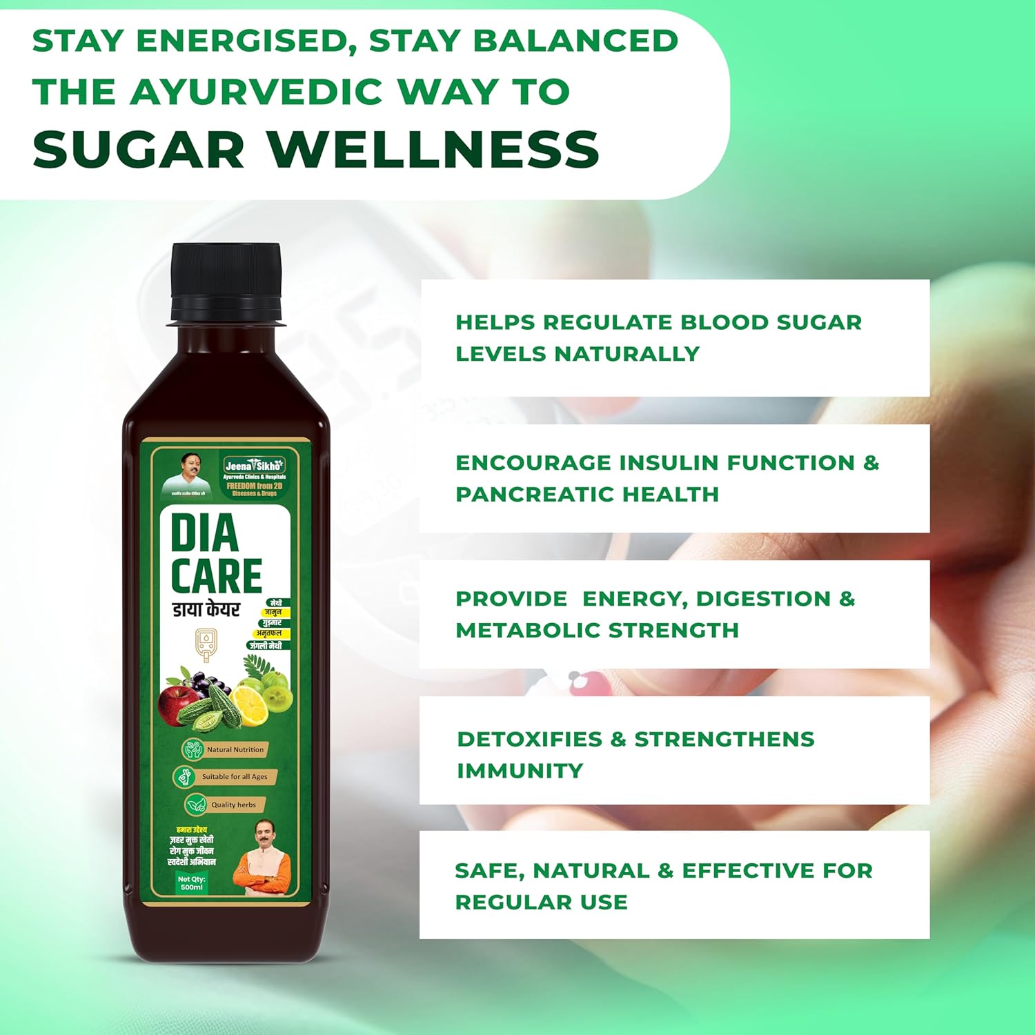 Jeena Sikho Dia Care Juice | Ayurvedic Diabetes Care & Blood Sugar Support | Natural Herbal Juice for Diabetes and Manage Sugar Level, 500 ml, Pack of 1