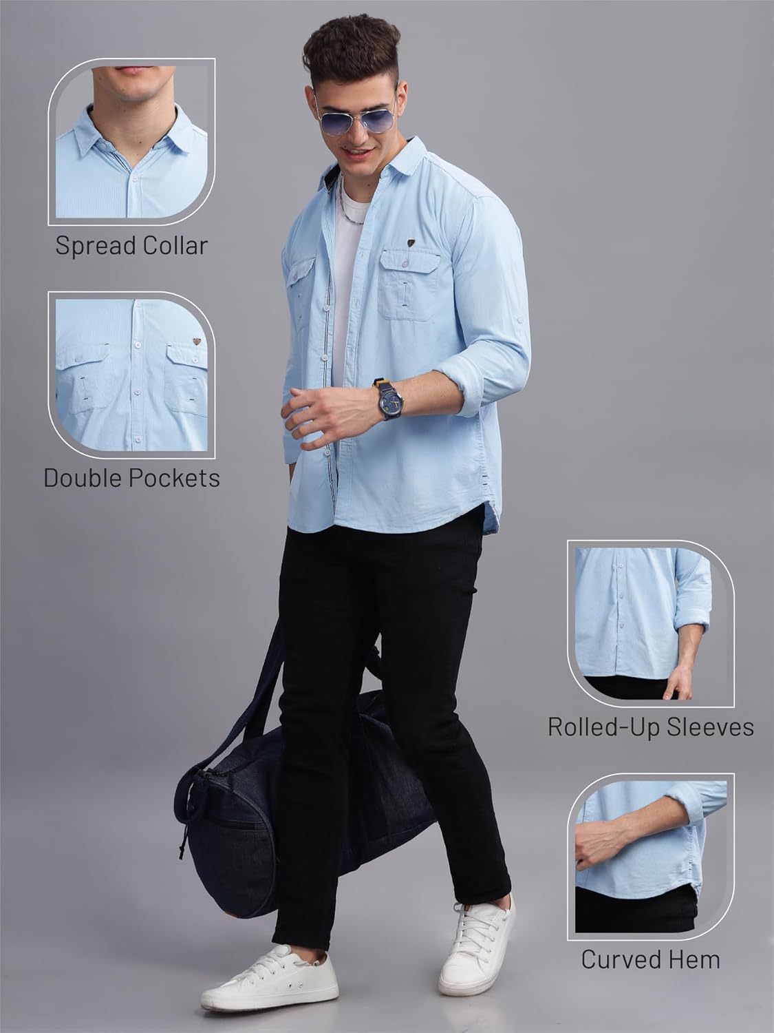Veirdo® Men’s Pure Cotton Regular Fit Casual Shirt with Full Sleeves & Chest Pocket | Stylish Button-Down for Office, Party Sizes: S to 2XL