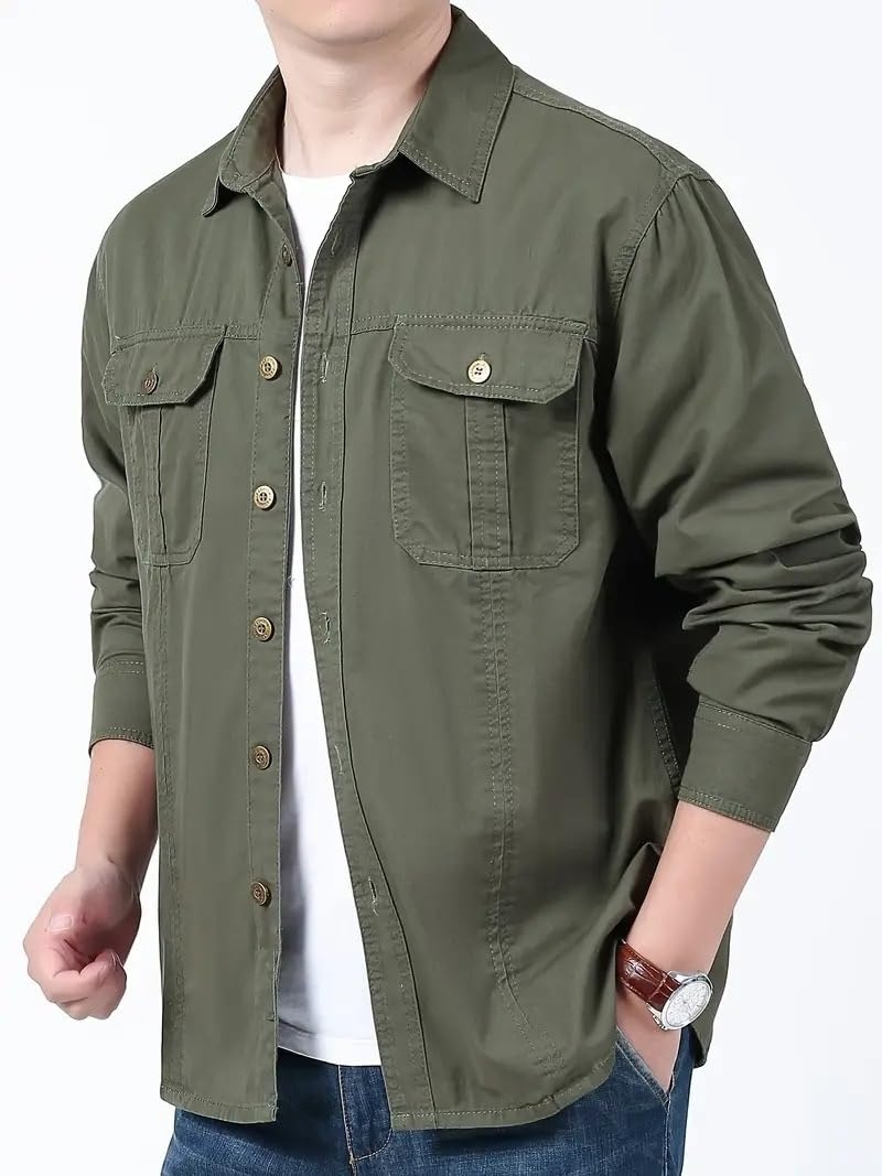 Men’s Cargo Jacket Shirt | 100% Cotton | 6 Pocket Utility Overshirt | Casual & Outdoor Wear | Breathable & Lightweight Fabric