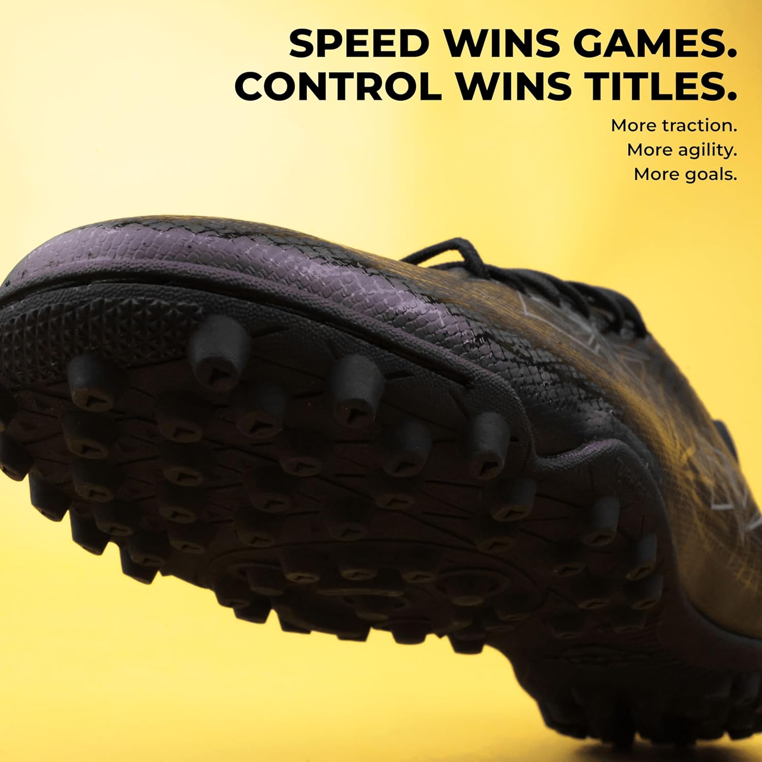 Speed wins games. Control wins titles – Turf-Specific TPU Sole: More traction. More agility. More goals