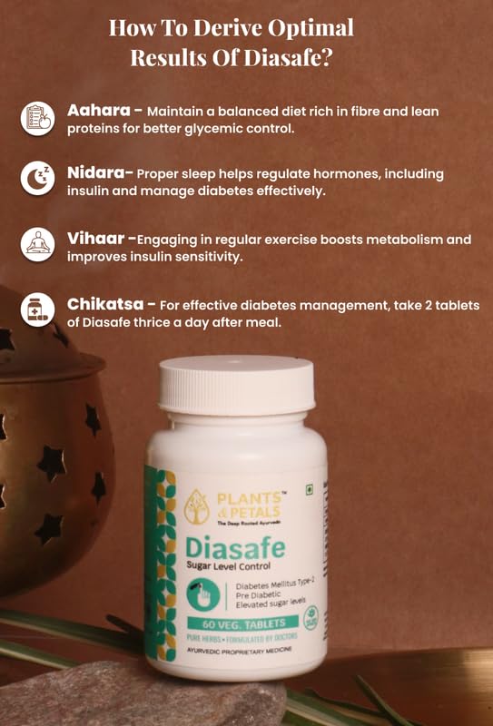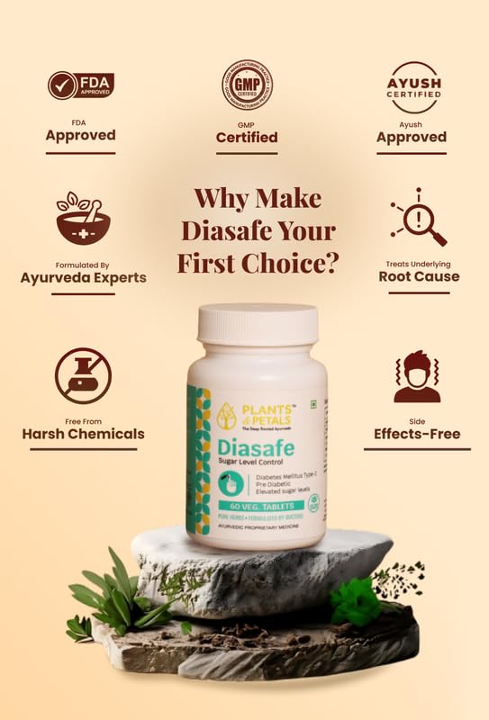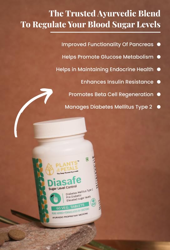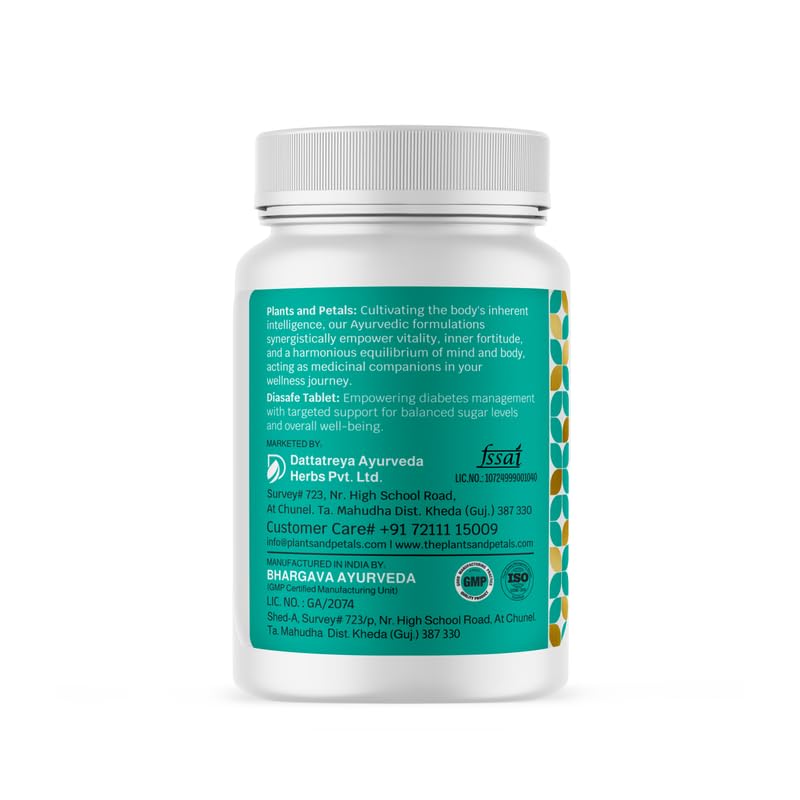 PLANTS & PETALS Ayurvedic Diasafe Tablet | Ayurvedic Blood Sugar Support | Herbal Diabetes Care Supplement | Natural Glucose Management | 60 Tablets