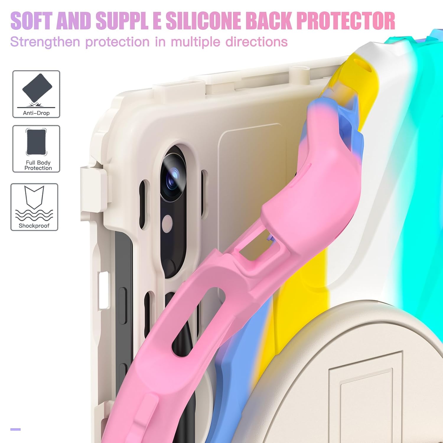 [Corner Protection Durable Design]: Hybrid defender armor anti-slip triple layers for protection. There are A inner hard polycarbonate shell, a soft shock resistant drop proof silicone outer shell and a front frame.This smart design provides tablet with max protection.Extremely ideal for women,students,teachers,kids and children, including boys and girls.