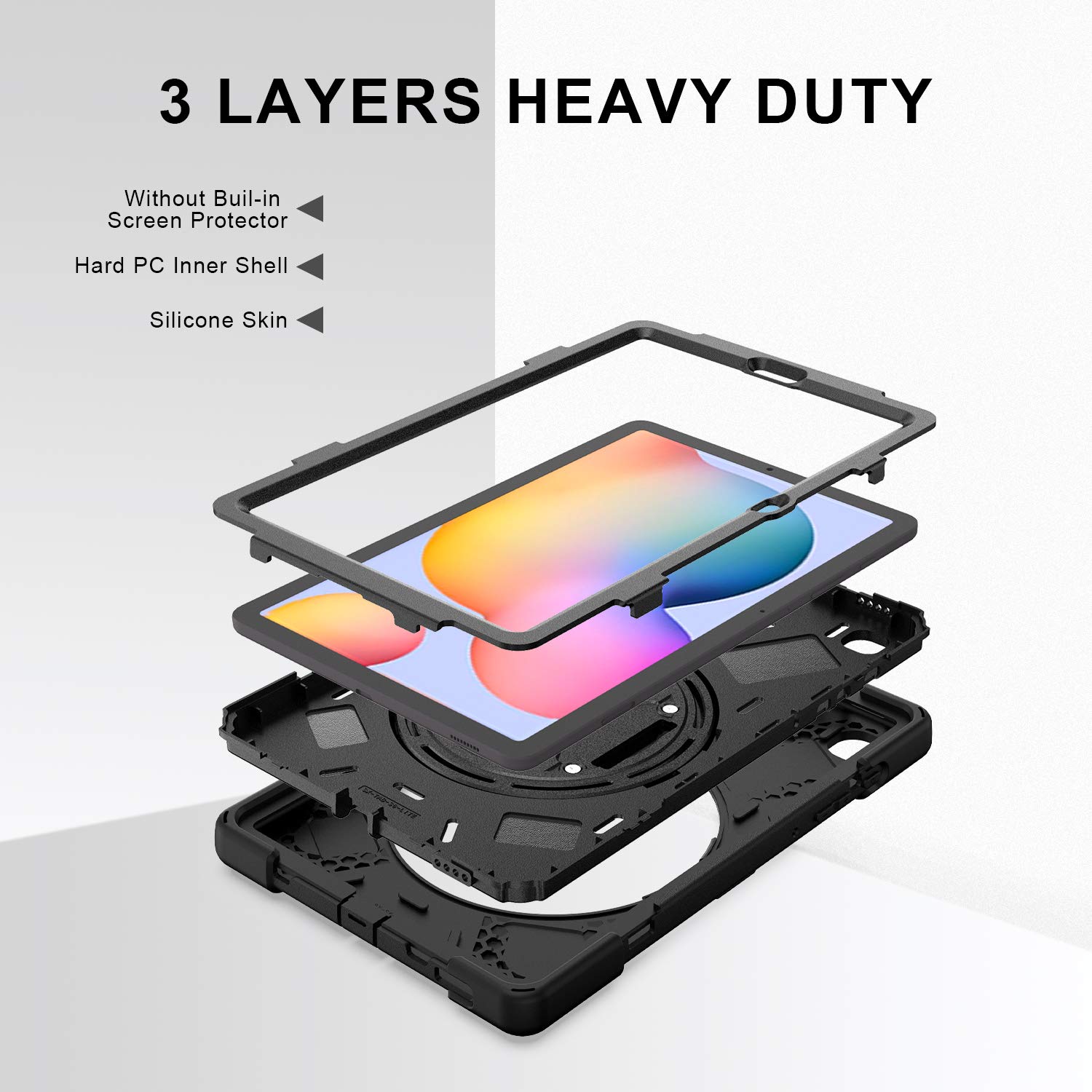 [Compatibility]: (1)No built-in screen protector.(2)This heavy duty corner protection hard rugged protective shockproof silicon hybrid defender bumper case compatibles for the newest model Samsung Galaxy Tab S6 Lite 10.4inch. NOT compatible with other tablet models.