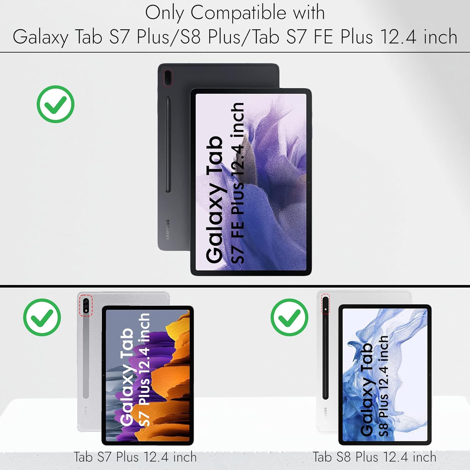[Compatibility] : This Flip Cover Is Exclusively Designed For Samsung Tab S7 Plus / S8 Plus / S7 FE 12.4 inch. Note: It Will Not Be Compatible Any Other Model. Please Check Your Tablet Model Before Purchase.
