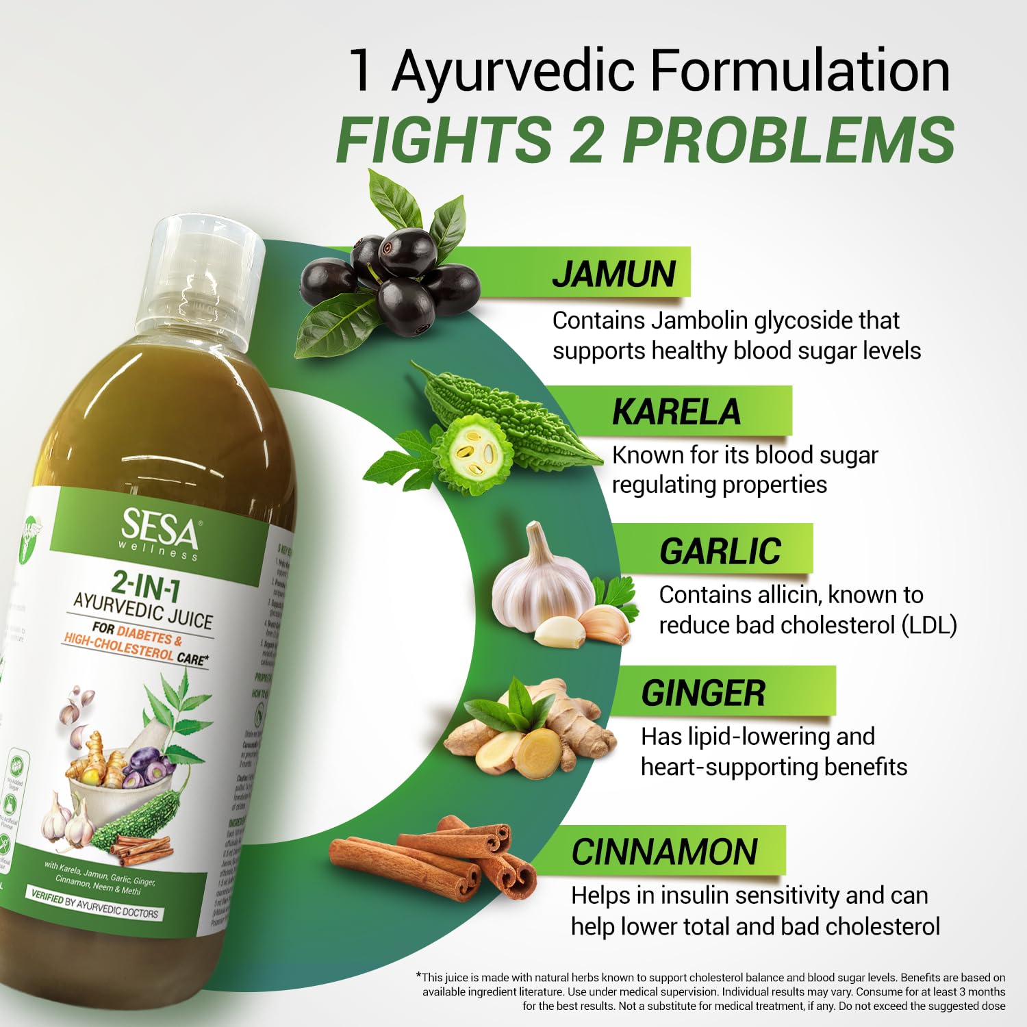 Sesa 2-in-1 Ayurvedic Juice – 1L | Supports Healthy Cholesterol & Blood Sugar Levels | With Karela, Jamun, Garlic & Cinnamon | No Added Sugar