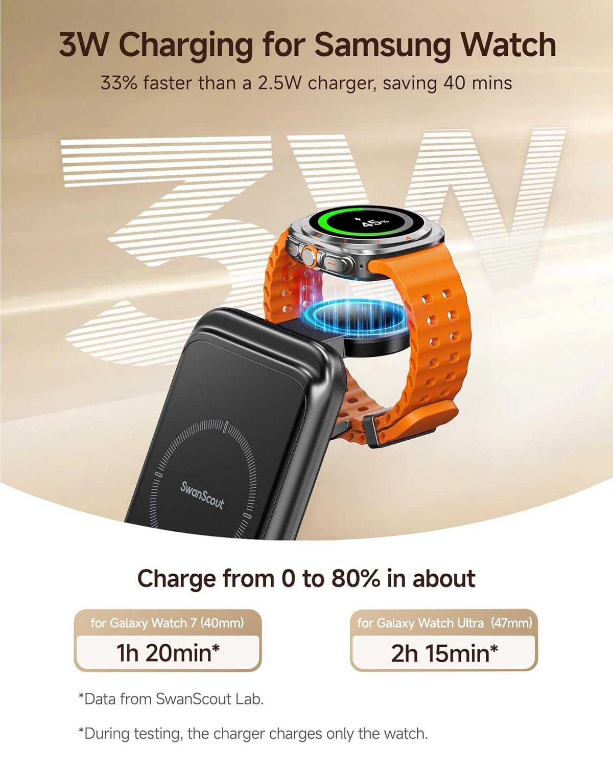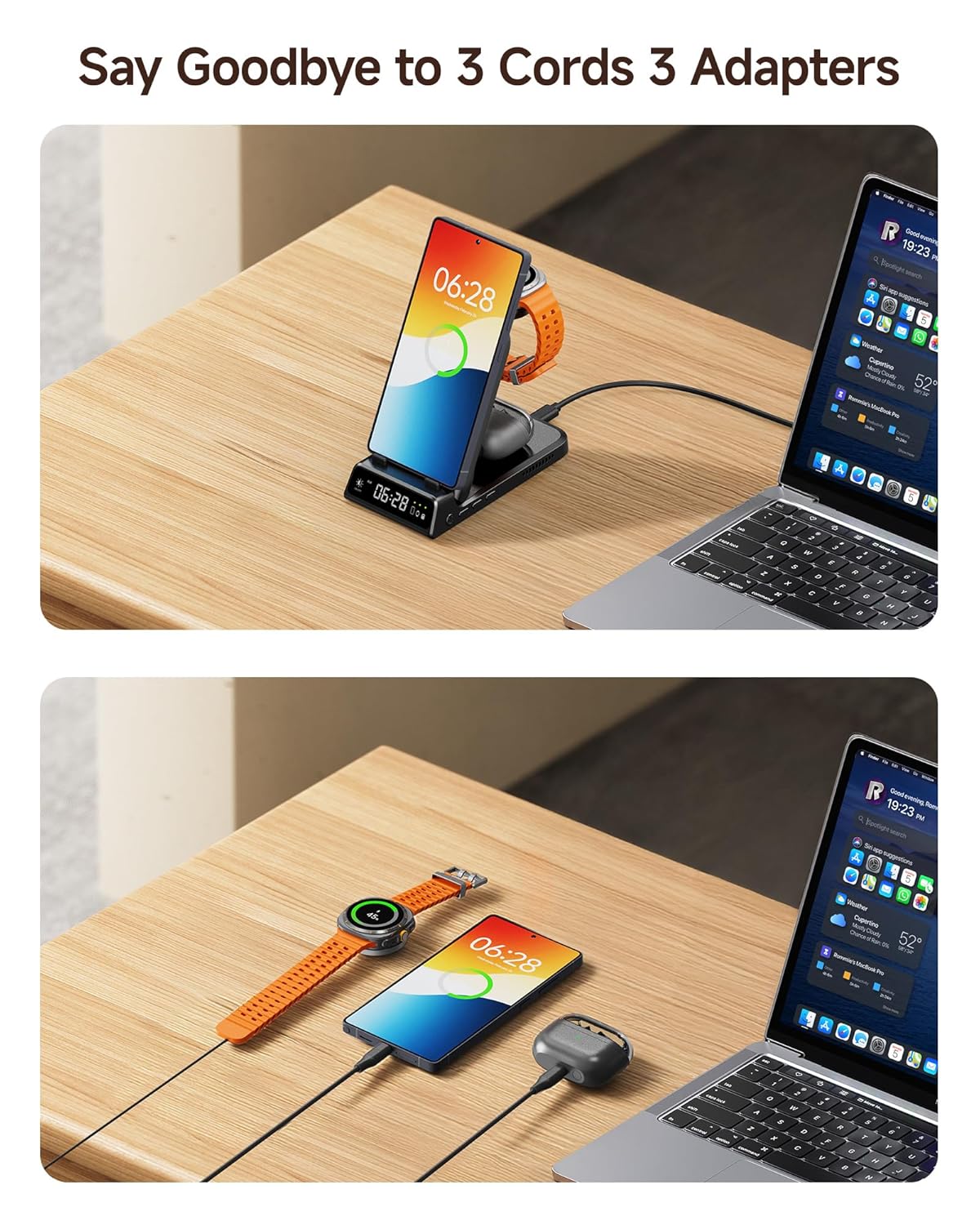3-in-1 Design Simplifies Your Life: Charge your phone, Galaxy Watch, and headphones in one place, eliminating messy cables and keeping your space organized and efficient. Note: For optimal charging, use an 18W or higher adapter