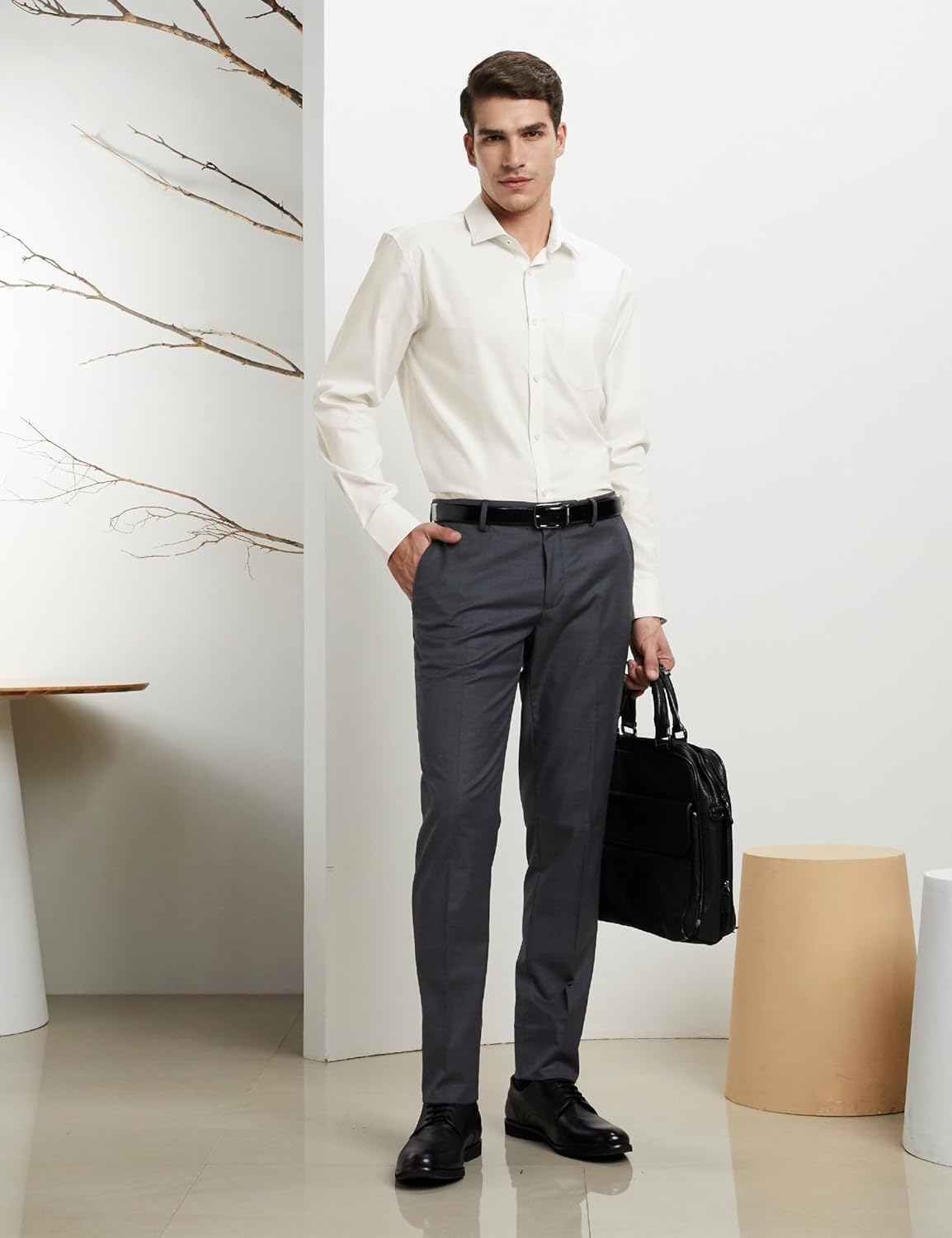 These formal shirts are made out of 100% double ply premium cotton material with liquid ammonia and moisture cure treatment that will resist wrinkles, add lustre and make the material breathable. The superlative craftsmanship with semi-cutaway collar, French placket, shanked and wrapped buttons, removable collar bones, and high quality interlinings would add on to the finesse of the garment. You may pair it up with a formal trouser and a blazer for a sharp formal look….. or roll up the sleeves and wear it with a chino .