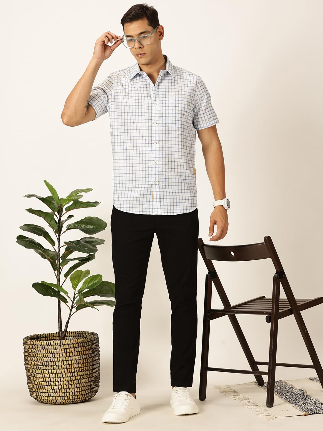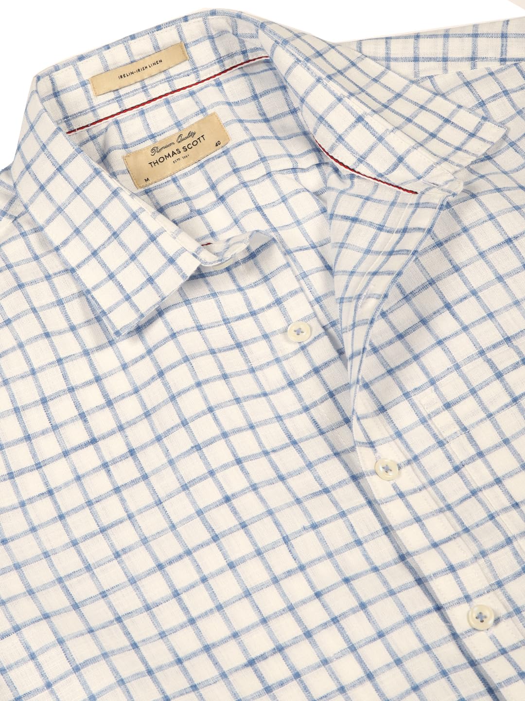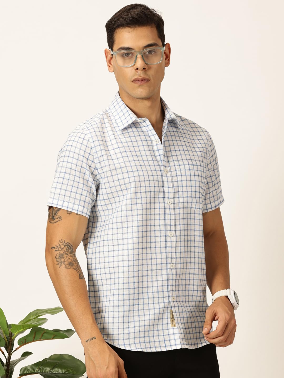 Thomas Scott Men’s | Checks | Half Sleeve | Slim Fit | Linen Blend | Spread Collar | Casual Shirt