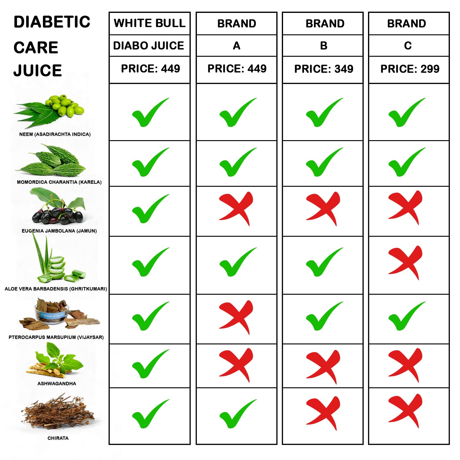 Natural Blood Sugar Support with Herbal Extracts – The WHITE BULL Diabo Tea & Diabo Juice Combo is formulated with a powerful blend of natural herbs known for their ability to support healthy blood sugar levels. Ingredients like Jamun, Gudmar, Karela, and Giloy work synergistically to help regulate glucose absorption, promote insulin sensitivity, and support overall diabetes management.